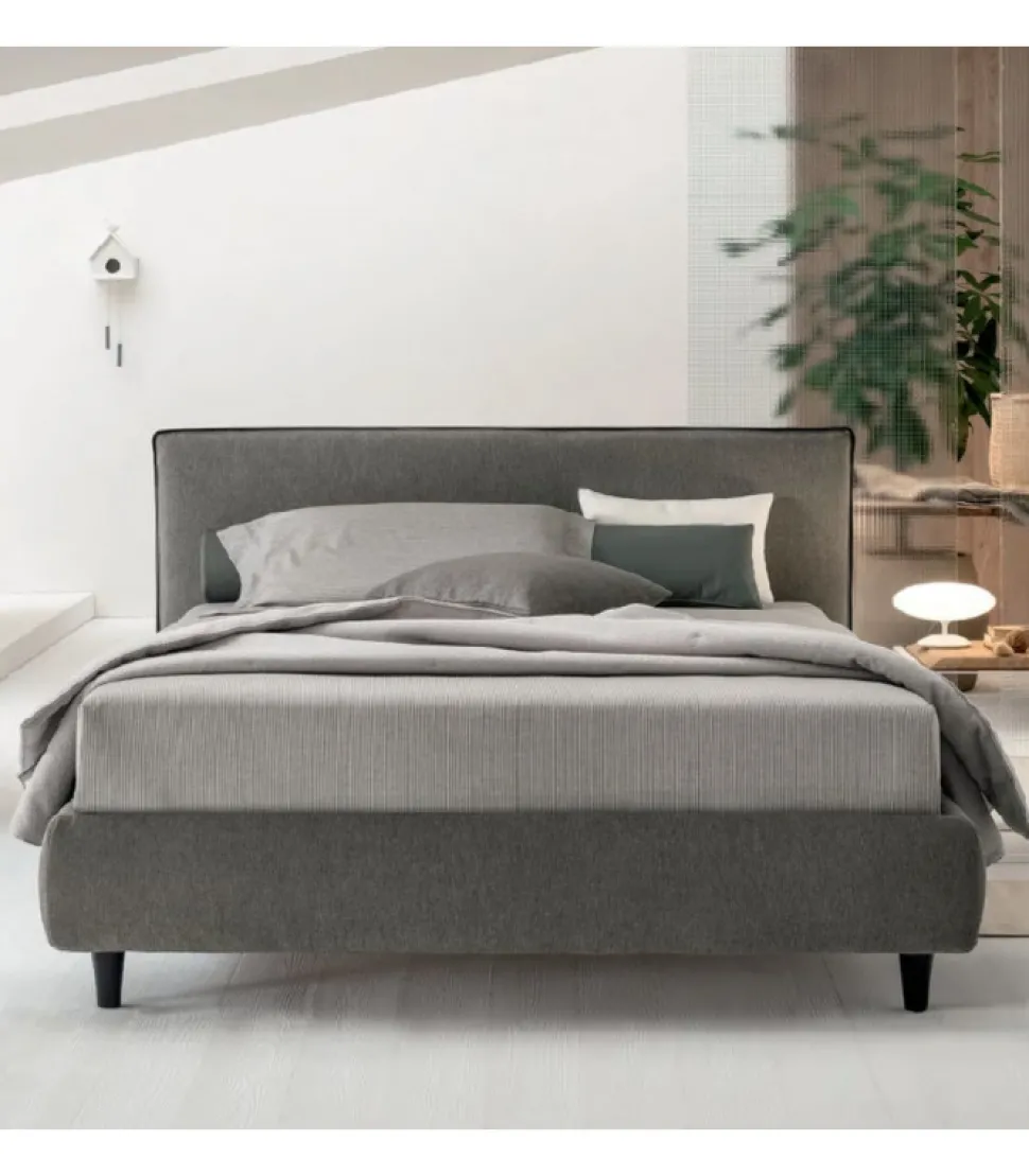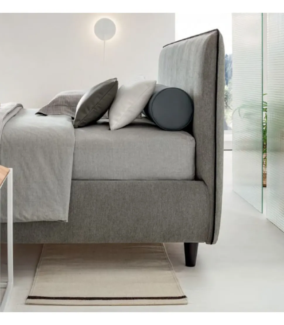 Il Letto E Caratterizzato Da Una Testata Morbida, Ma Di Spessore. Oltre Al Rivestimento, Anche Il Bordino A Contrasto E Un Dettaglio Da Personalizzare.