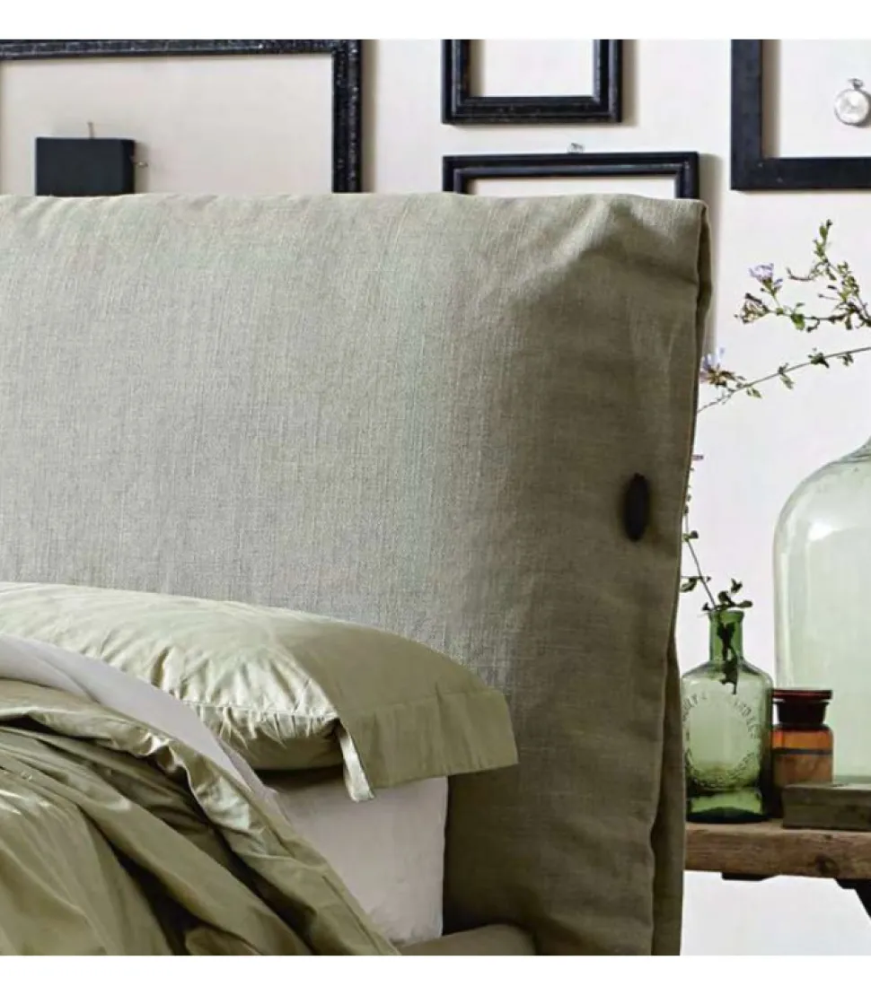 La Morbida Testata, Dalle Forme Singolari, E Caratterizzata Dal Tessuto Accoppiato A Una Soffice Ovatta, Che Rende Le Superfici Gradevoli Al Tatto. Puo Essere Rifinita Con Il Classico Fiocco O Con Il Nuovo Alamaro; Entrambi Possono Essere Scelti Nello Stesso Tessuto E Colore Del Letto Oppure In 5 Diversi Colori Di Vera Pelle.