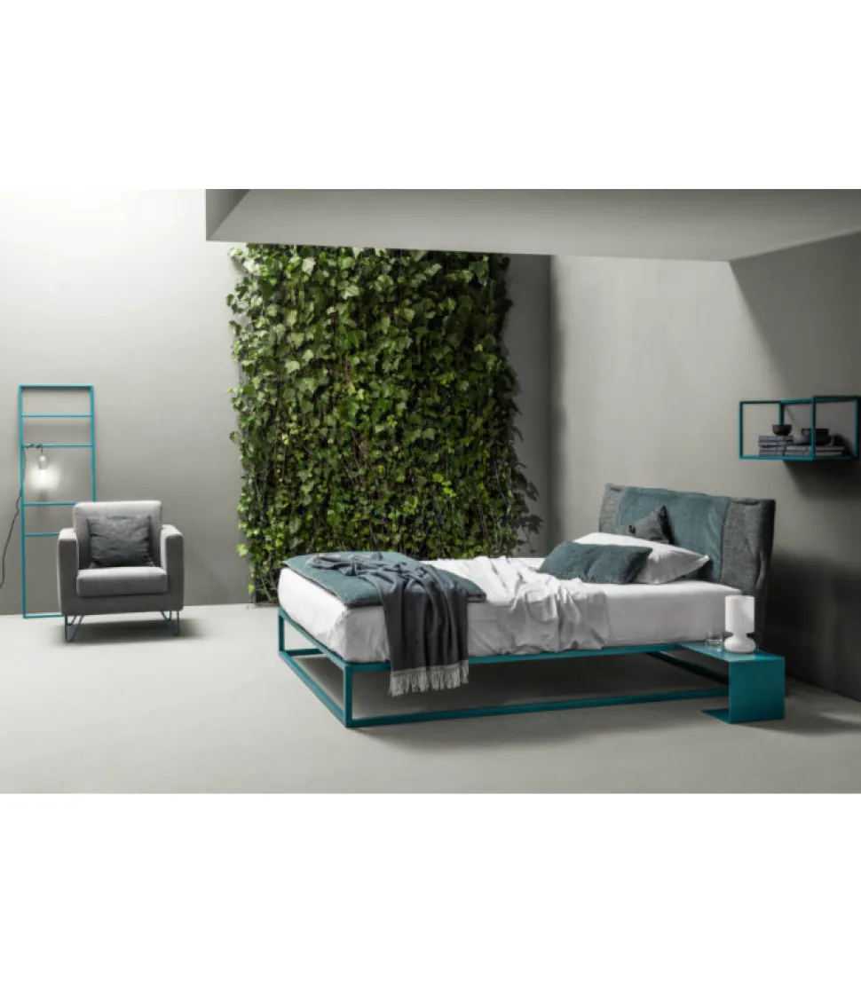 Letto Frame Dress In Metallo Colorato Con Testiera Imbottita Reversibile