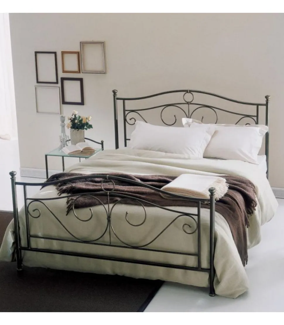 Letto Garda In Ferro Laccato O Patinato A Mano, Nella Versione Matrimoniale, Con Pediera O Giroletto. Prodotto Di Ingenia Bontempi, 100% Made In Italy.