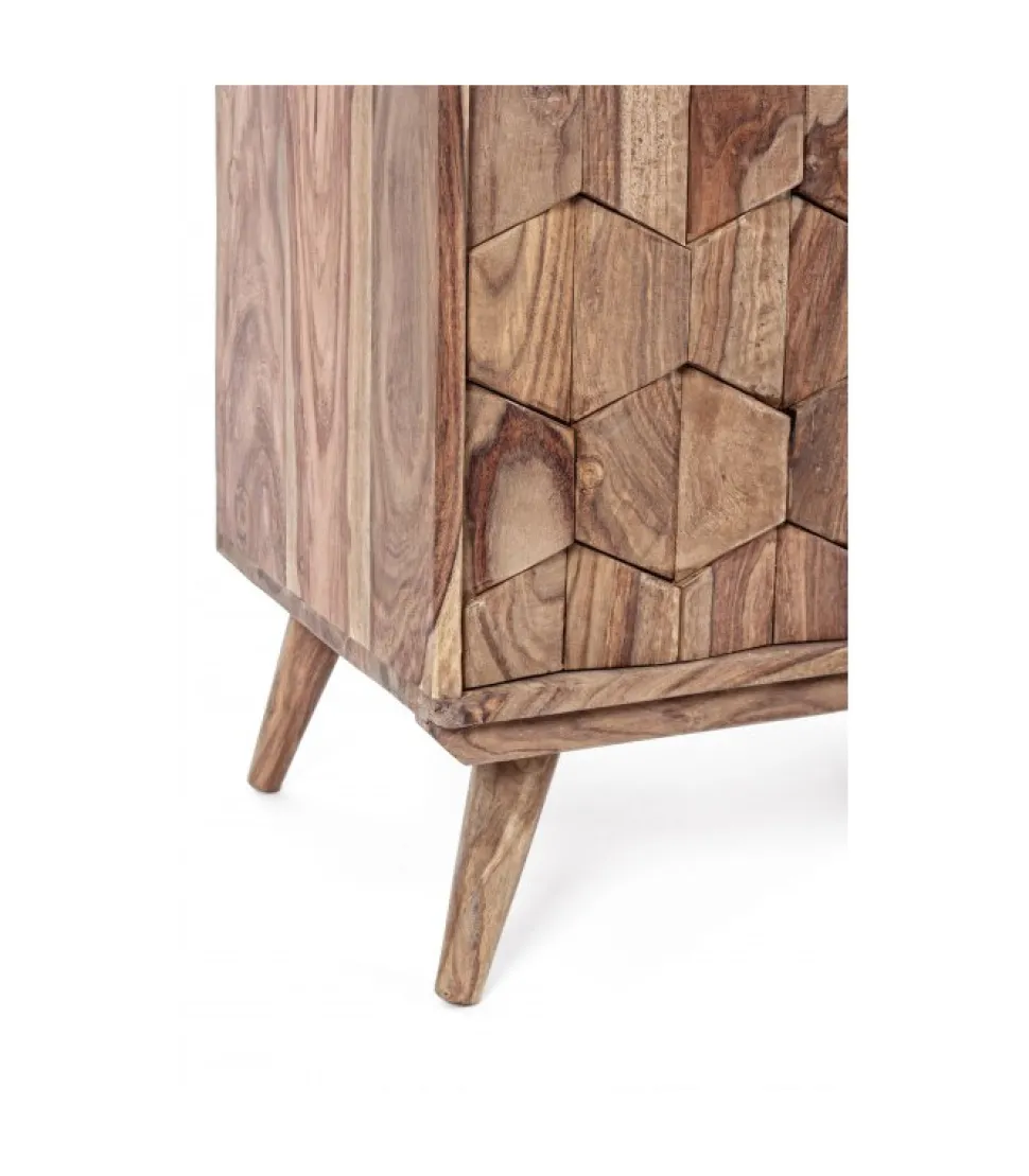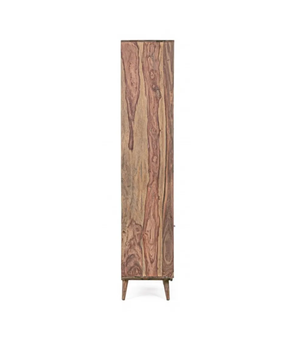 Libreria 1A-2C Kantstruttura In Legno Sheesham, Schienale E Fondo Cassetti In Compensato- Finitura Naturale- Pomelli In Acciaio- Gambe Da Assemblare.Dimensioni:57.5(L) – 40(P) – 194(H)
