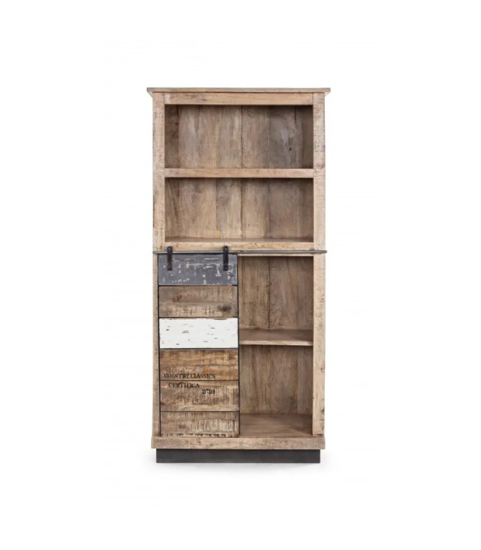 Libreria 1A-4P Tudor Sstruttura In Mango, Schienale In Mdf- Base In Acciaio- Finitura A Base Di Nitrocellulosa.Dimensioni:71(L) – 34(P) – 163(H)