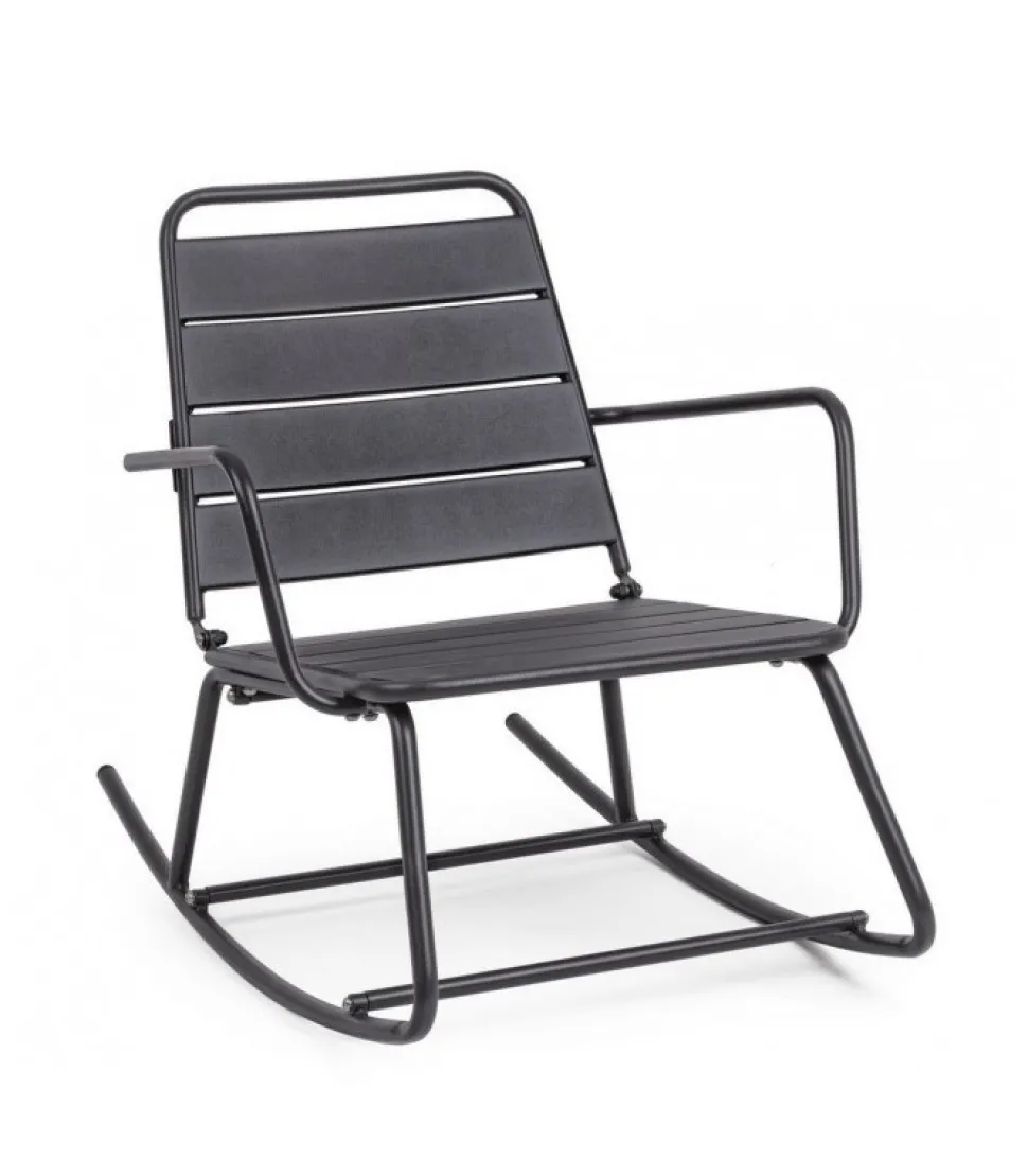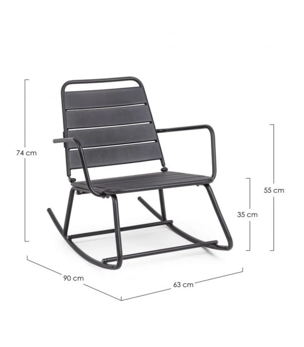 Poltrona Dondolo Lillian Antracite Acciaio Trattato Per Esterno (E-Coating) E Verniciato A Polvere (Poliestere) Con Finitura Opaca. Da Assemblare. – Dimensioni In Cm. 63 (L.) 90 (P.) 74 ( H.) 35 ( H1) – 55 ( H2)