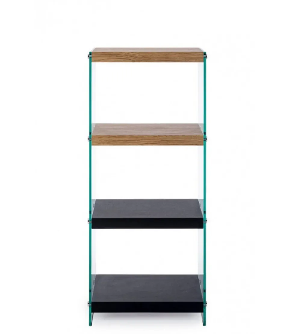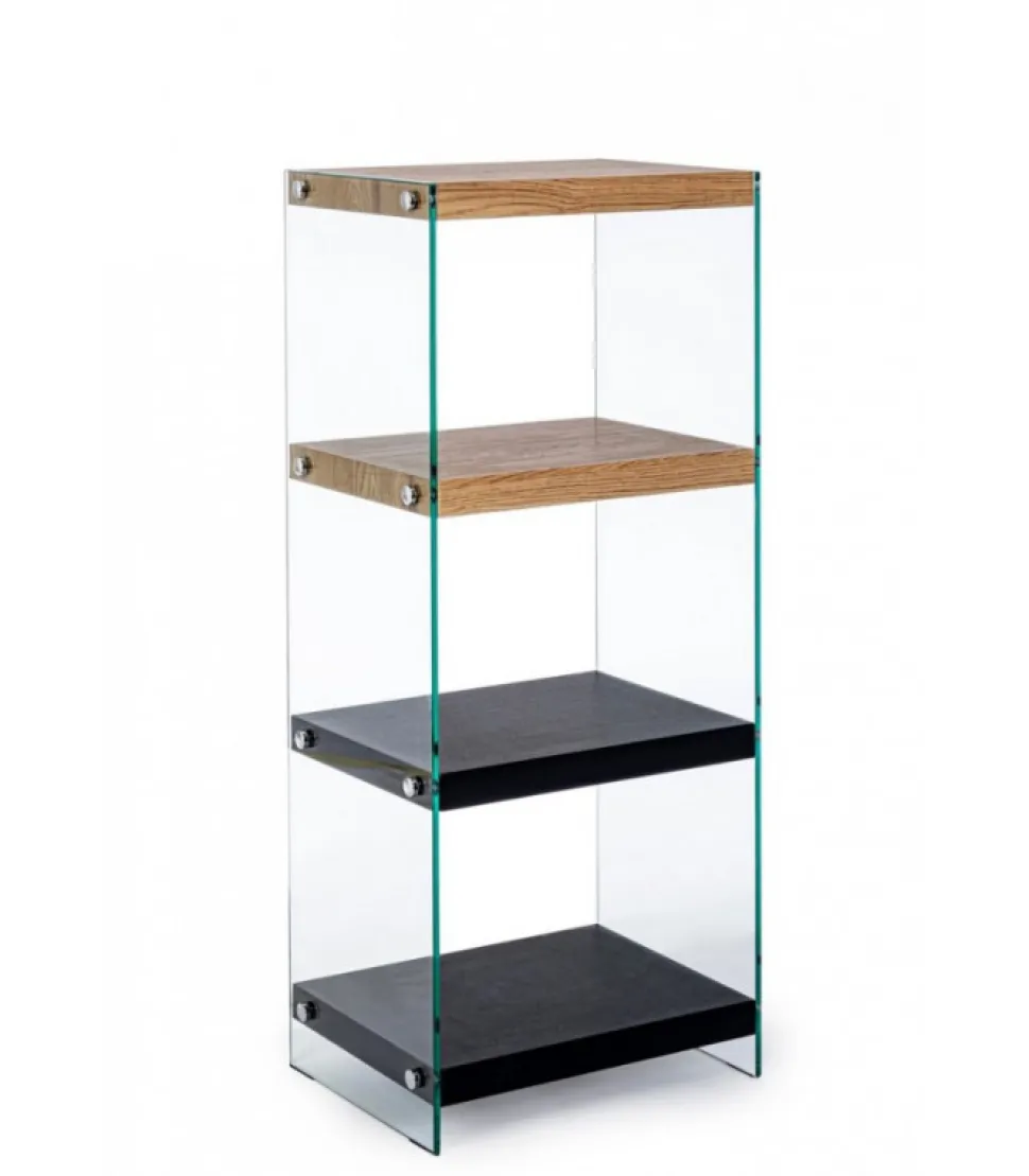 Libreria 4P Line Wood Nero Mensole In Mdf Rivestite In Carta Melaminica Effetto Legno. Fianchi In Vetro Temperato Spessore 12Mm. Da Assemblare. – Dimensioni In Cm. 40 (L.) 30 (P.) 100,5 H
