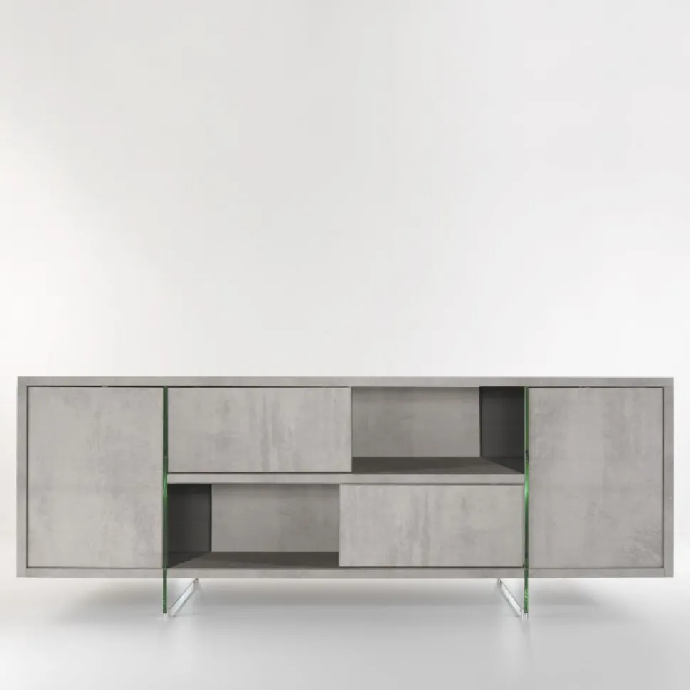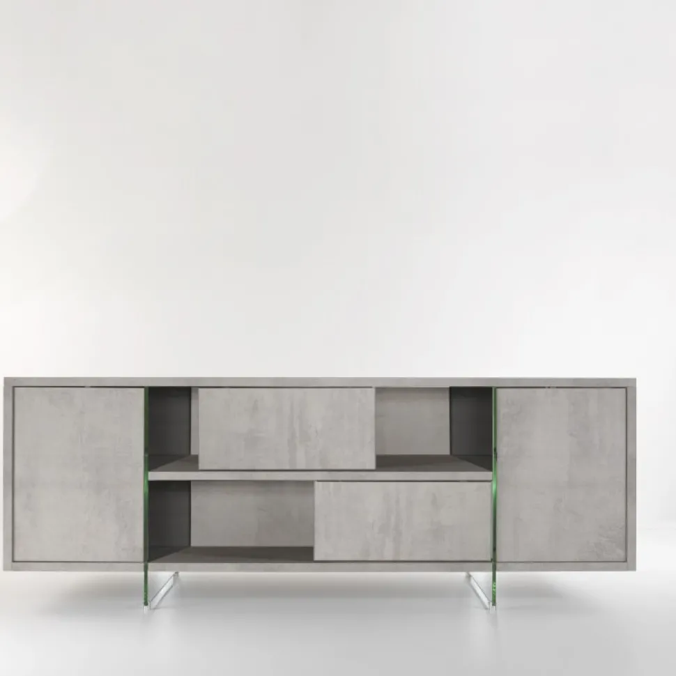 All’Interno Della Madia Sono Inseriti 2 Vetri Temprati Da 10 Mm. Che Sostengono La Struttura E Dividono Gli Spazi Con Leggera Trasparenza, Creando Anche Un Piacevole Effetto Sospeso Del Mobile.