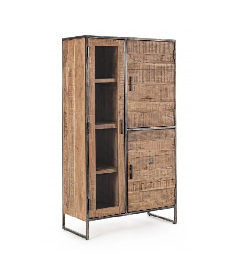 Mobile C-Vetrina 3A Elmerstruttura In Legno D’Acacia E Acciaio Verniciato A Polvere Epossidica, Schienale In Compensato- Finitura Acrilica Protettiva.Dimensioni:90(L) – 40(P) – 160(H)