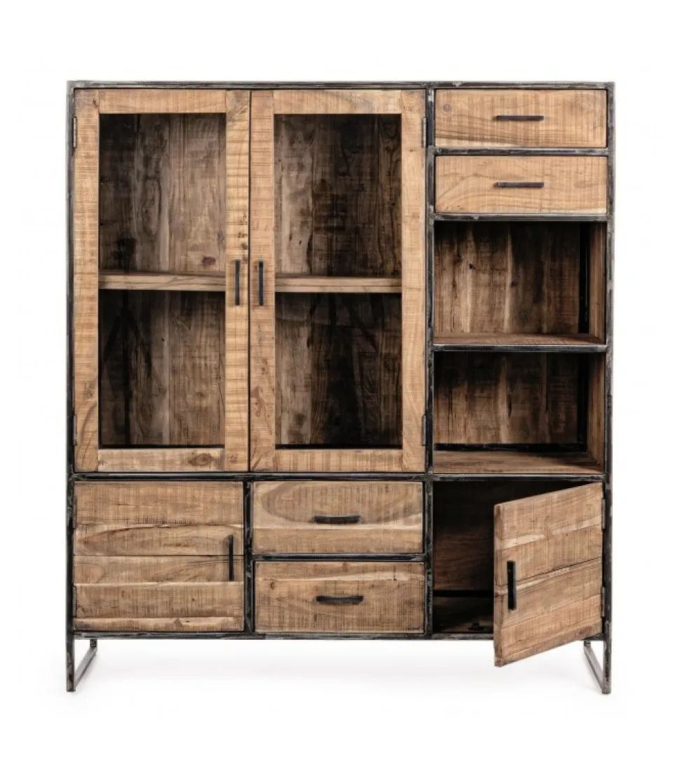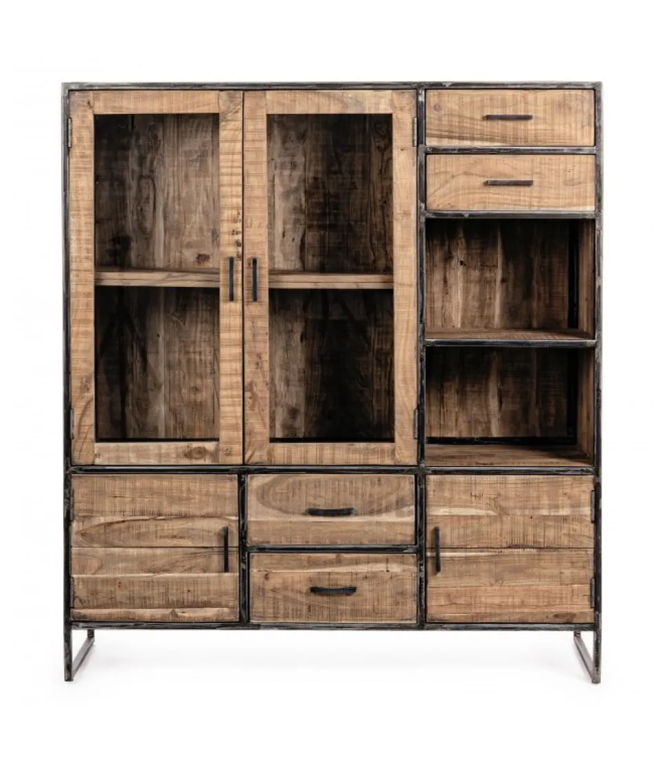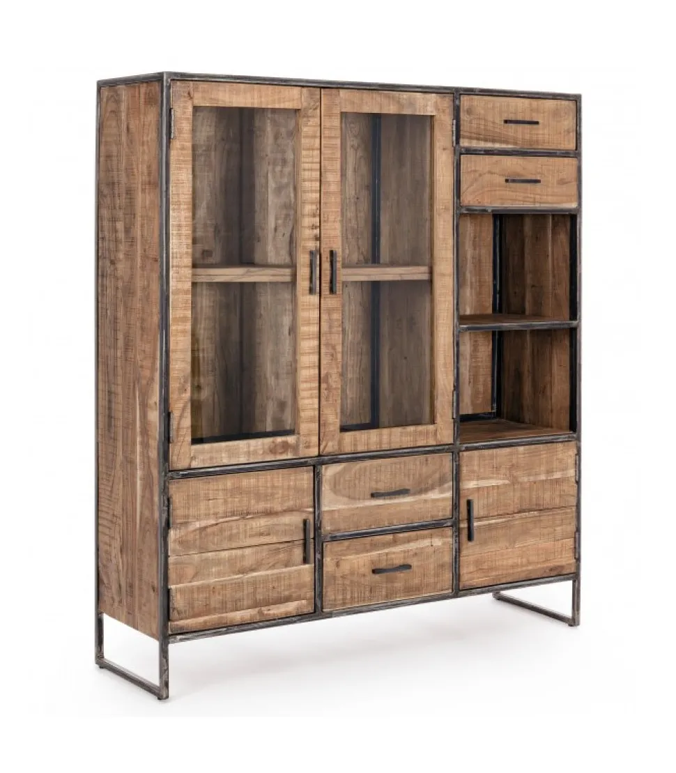 Mobile C-Vetrina 4A-4C Elmerstruttura In Legno D’Acacia E Acciaio Verniciato A Polvere Epossidica, Schienale In Compensato- Finitura Acrilica Protettiva.Dimensioni:140(L) – 40(P) – 160(H)