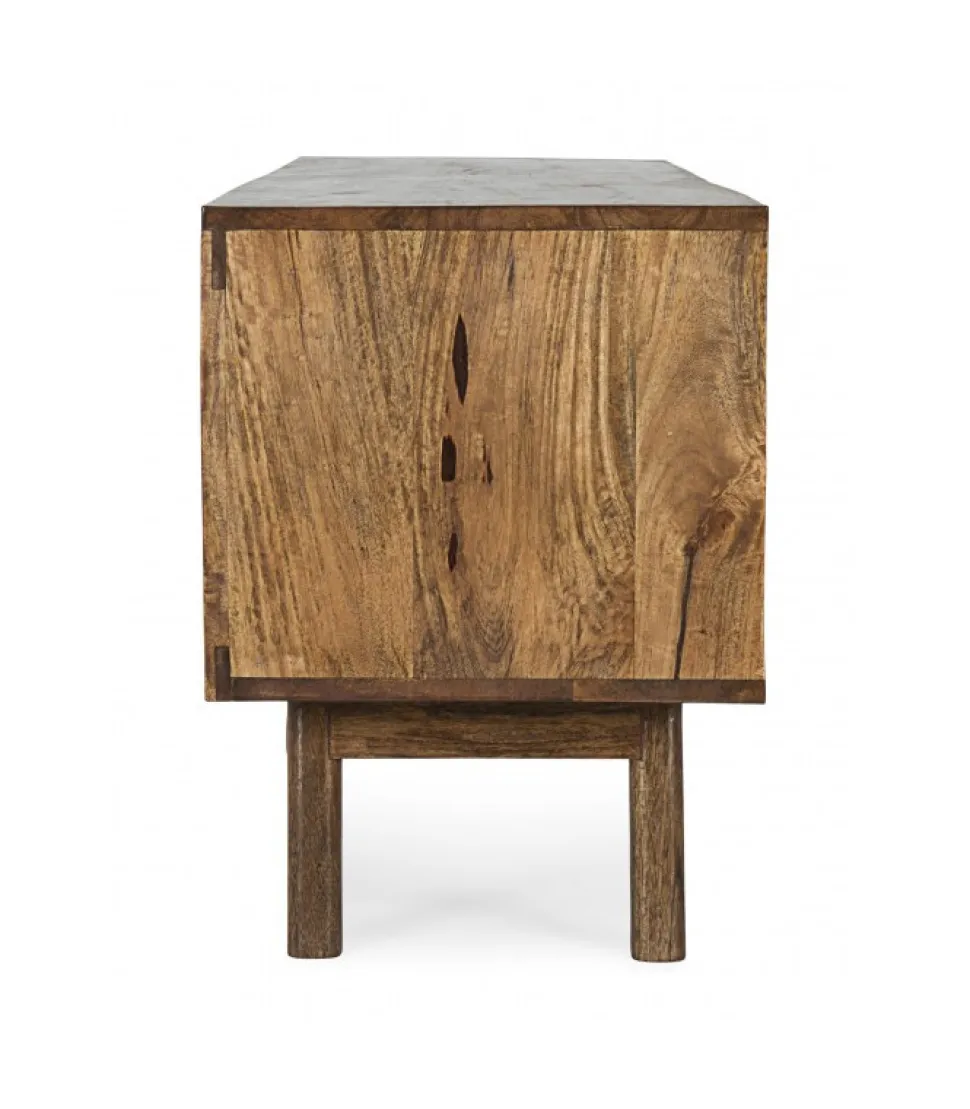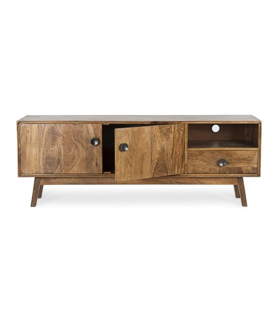 Mobile Porta Tv 2A-1C Sylvesterstruttura E Gambe In Legno Di Mango Con Finitura A Base D’Acqua- Schienale In Mdf- Pomelli In Acciaio- Gambe Da Assemblare.Dimensioni:152(L) – 40(P) – 55(H)