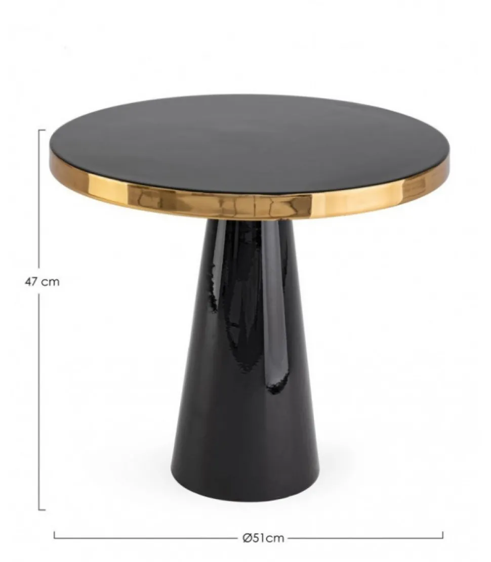 Tavolino Nandika Nero D51 Struttura In Acciaio Con Finitura A Smalto, Bordo Piano Con Finitura Placcata Ottone. Gamba Da Assemblare. – Dimensioni In Cm. O51 (L.) 47 H