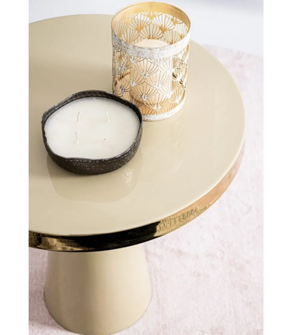 Tavolino Nandika Ivory D45.5 Struttura In Acciaio Con Finitura A Smalto, Bordo Piano Con Finitura Placcata Ottone. Gamba Da Assemblare. – Dimensioni In Cm. O45.5 (L.) 43 H