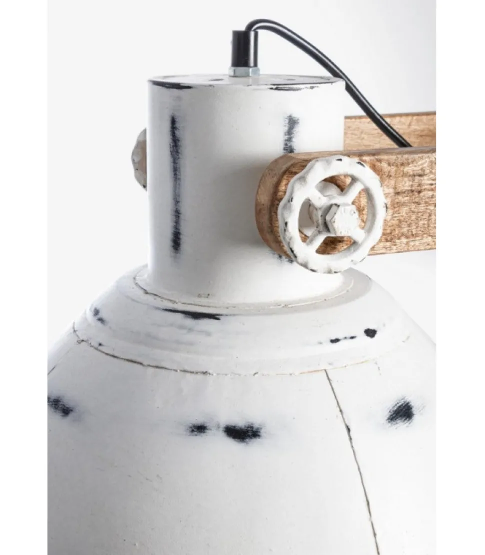 Lampadario 2Luci Odessa Bianco Acciaio Effetto Anticato E Legno Di Mango. Lamp(2X):E27 Max25W, E27 5W,Comp.Fluor Integr.Risp.En., E27 18W Alog.Risp.En.Lampadina/E Non Inclusa/E Lunghezza Cavo:1.40Mt – Dimensioni In Cm. O30X140 H