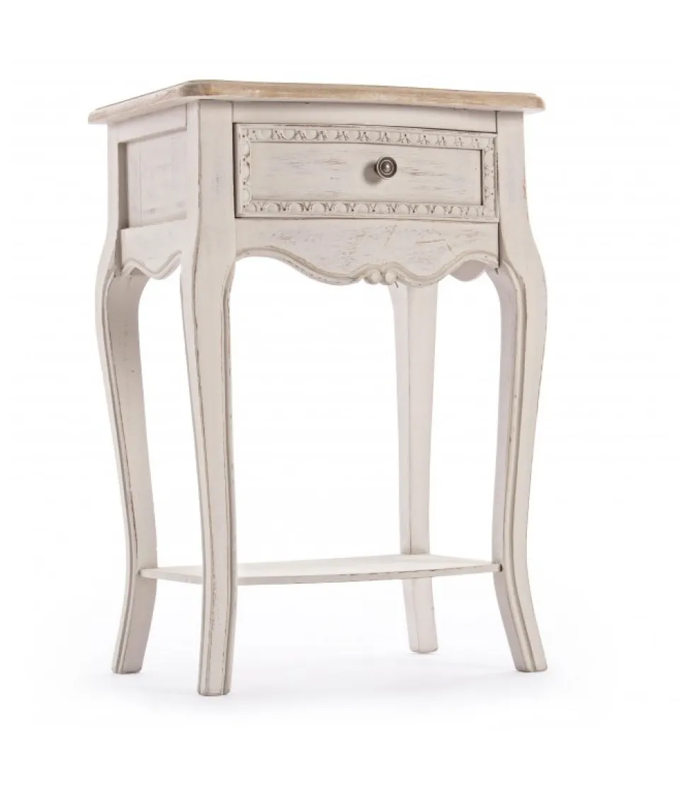 P.Lampada 1C-1P Clarissestruttura In Legno Paulownia Con Piano Impiallacciato- Pannelli In Mdf- Vernice Opaca A Base D’Acqua- Pomelli In Acciaio.Dimensioni:48(L) – 35(P) – 70(H)