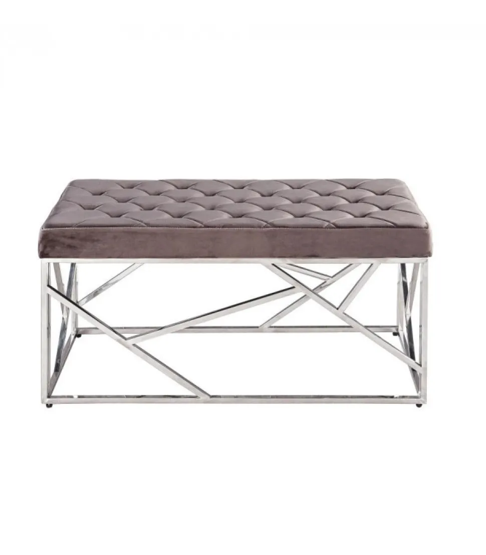 Panca Rayan Velluto Grigio 97X44 Struttura E Gambe In Acciaio Inossidabile. Imbottitura In Spugna