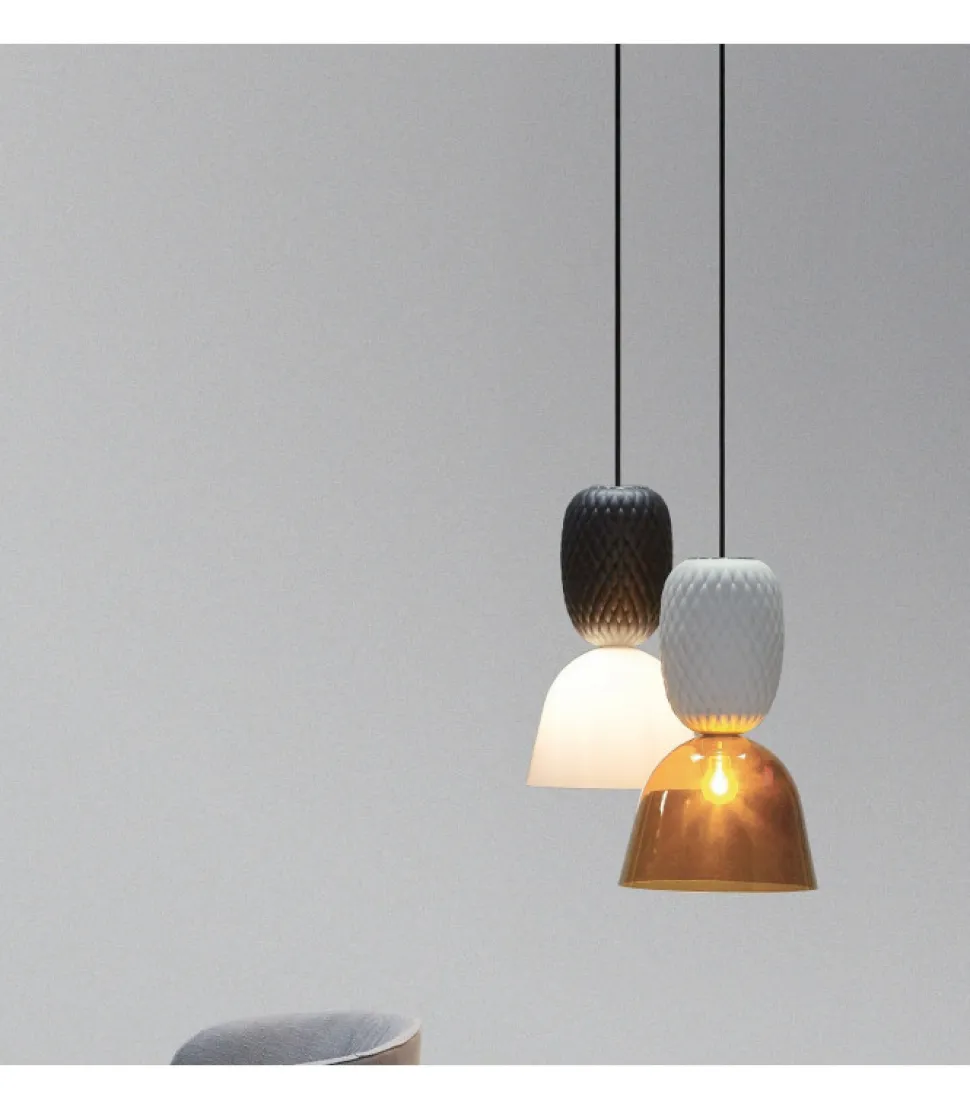 Lampadario Pineapple 7214/L1 Di Mm Design. Lampadario In Ceramica Con Paralume In Vetro Soffiato Di Murano Lucido. Sorgente Luminosa: Lampadina Con Attacco E27 Potenza Massima Lampadina: 1 X Max 15W E27 Led 220/240V Lampadina: Non Inclusa Dimensioni In Cm: 30X150
