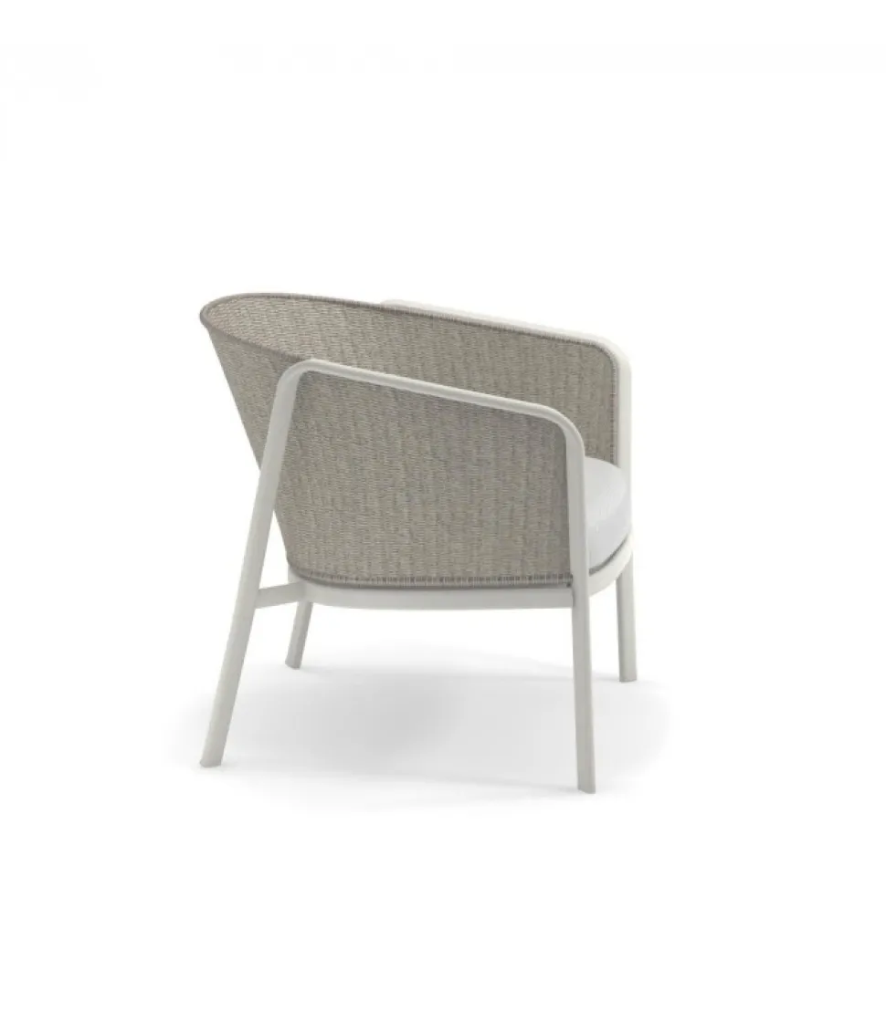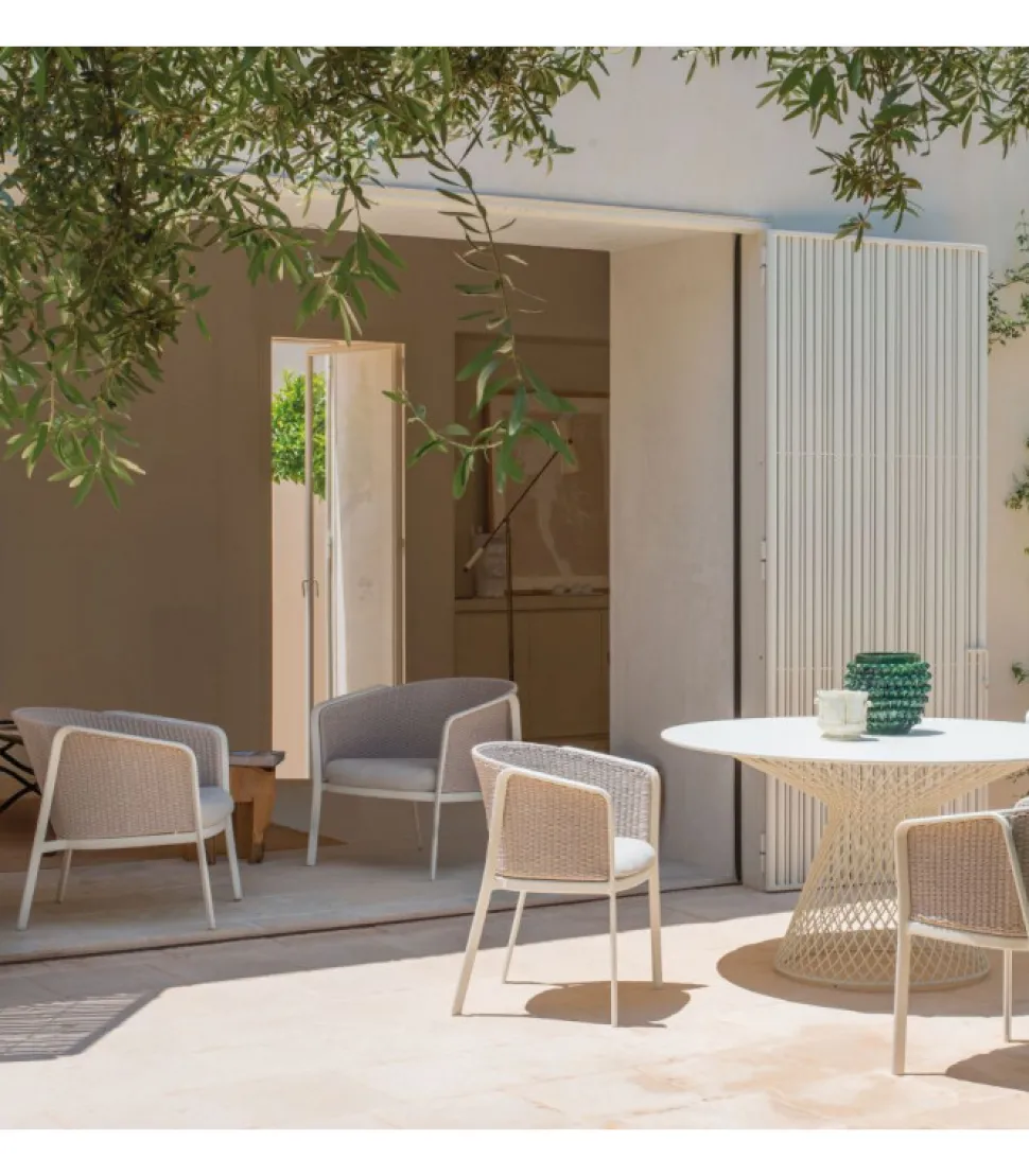 La Collezione Carousel Si Compone Di Quattro Versioni Di Poltroncina Dining, Tre Versioni Di Poltrona Lounge, Divano, Pouf, Coffee Table Quadrato E Rettangolare. Nelle Sedute, La Struttura A Cavalletto E In Tubolare Di Alluminio. Il Sedile, Costituito Da Una Lamiera In Lega Di Alluminio Che Viene Imbutita Per Conferire Una Forma Pulita, E Successivamente Fissato Alla Struttura Di Alluminio Attraverso Una Saldatura Di Tipo Strutturale, Eseguita Con Tecnologia Tig Che Conferisce Particolare Resistenza Oltre Che Un Miglior Standard A Livello Estetico. La Struttura Dello Schienale E In Acciaio Ed E Il Supporto Su Cui Sono Realizzati Gli Intrecci Decorativi Nei Vari Materiali Proposti. Tutti I Materiali Selezionati Garantiscono Una Resistenza E Una Stabilita Del Colore. Per La Poltroncina Dining E Prevista Una Versione In Tessuto Tecnico Quale Propilene In Fibra Fiber Fill, Con Cui Viene Realizzato Un Cuscino Sedile E Uno Schienale Autoportante. Questi Materiali Garantiscono Idrorepellenza, Per Questo Il Prodotto E Particolarmente Idoneo In Tutti Gli Usi Di Ambienti Marini E In Condizioni Climatiche Estreme. I Pouf Hanno Una Struttura In Tubolare Ovale Di Alluminio Mentre I Tavoli Hanno Una Struttura In Tondino Di Acciaio Con Piano In Lega Di Alluminio E Sottopiedi Regolabili In Nylon E Vite Inox. Tutti Decorati Con Intreccio Di Corda.