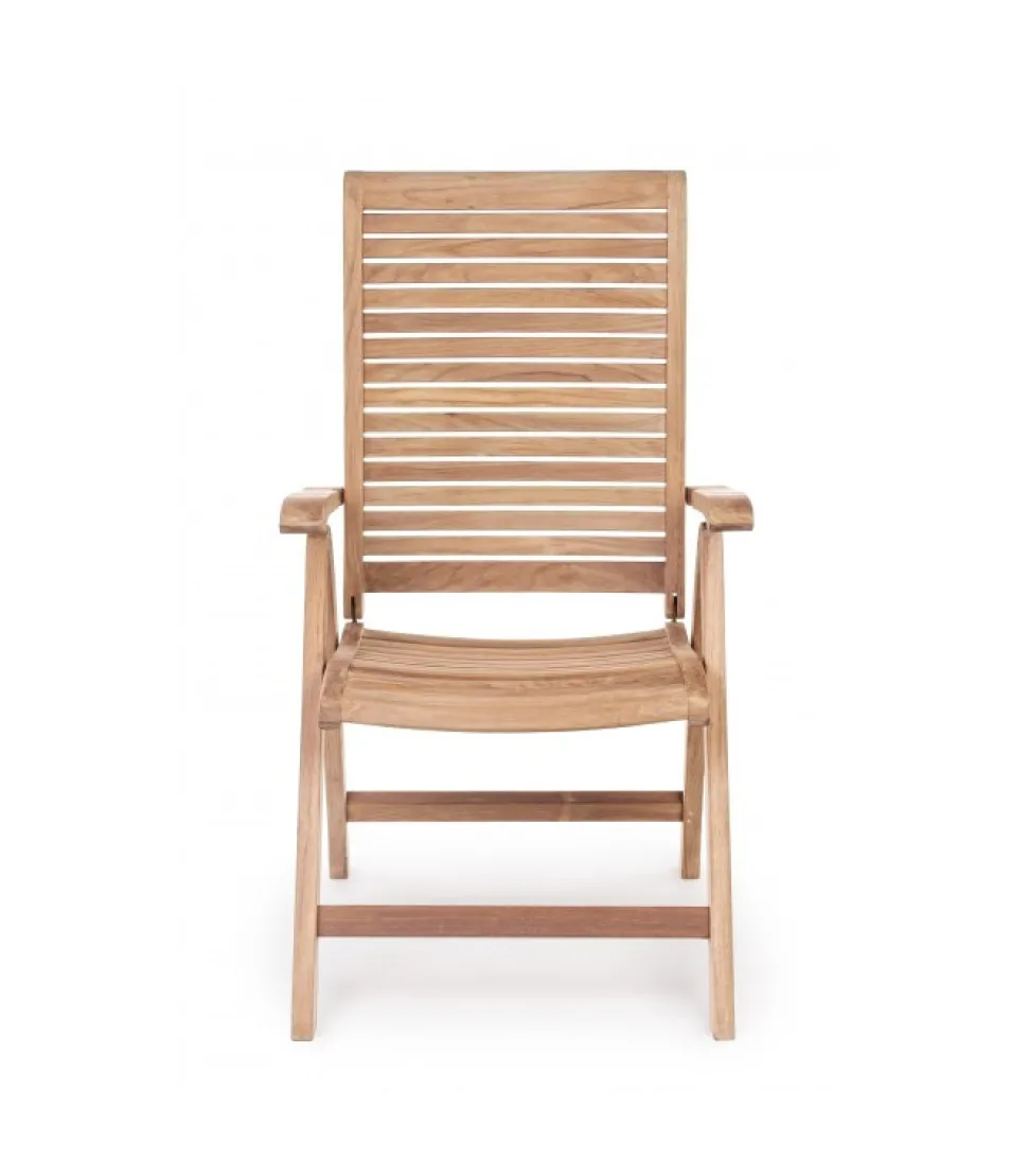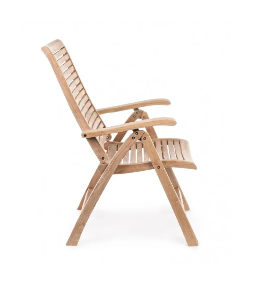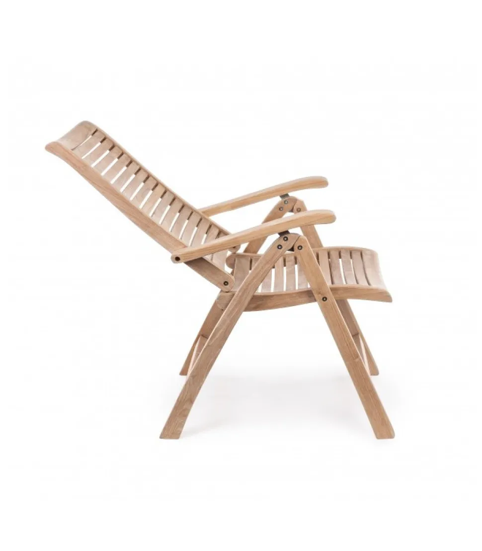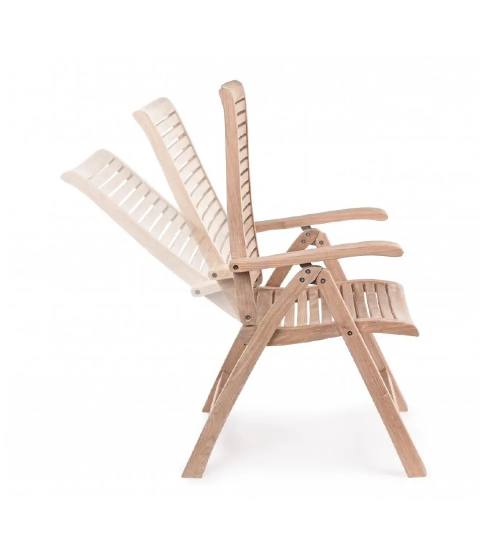 Poltrona Reclinabile Maryland – Legno Teak (Classe A) – Svlk (Legno Certificato Proveniente Da Foreste Sostenibili), Produzione Meccanica. Ferramenta In Acciaio Galvanizzato. Schienale Reclinabile (5 Posizioni). Pieghevole. – Dimensioni In Cm. 61.5 (L.) 64 (P.) 109 ( H.) 45 ( H1) – 67 ( H2)