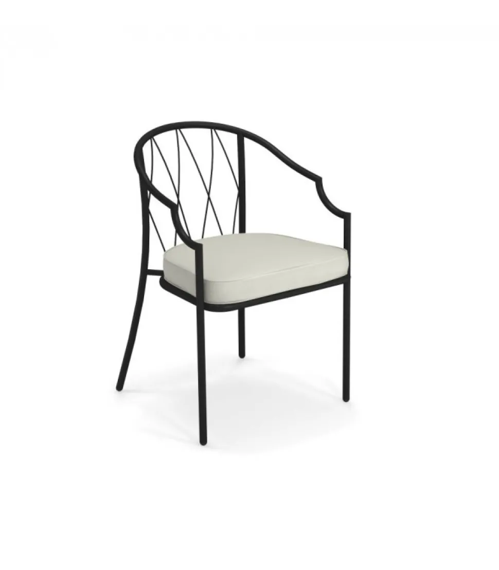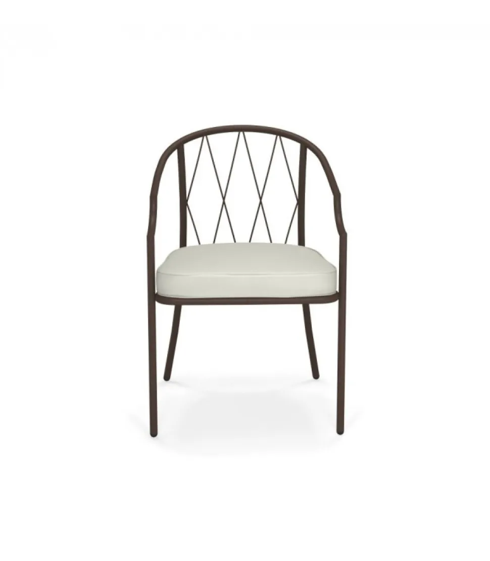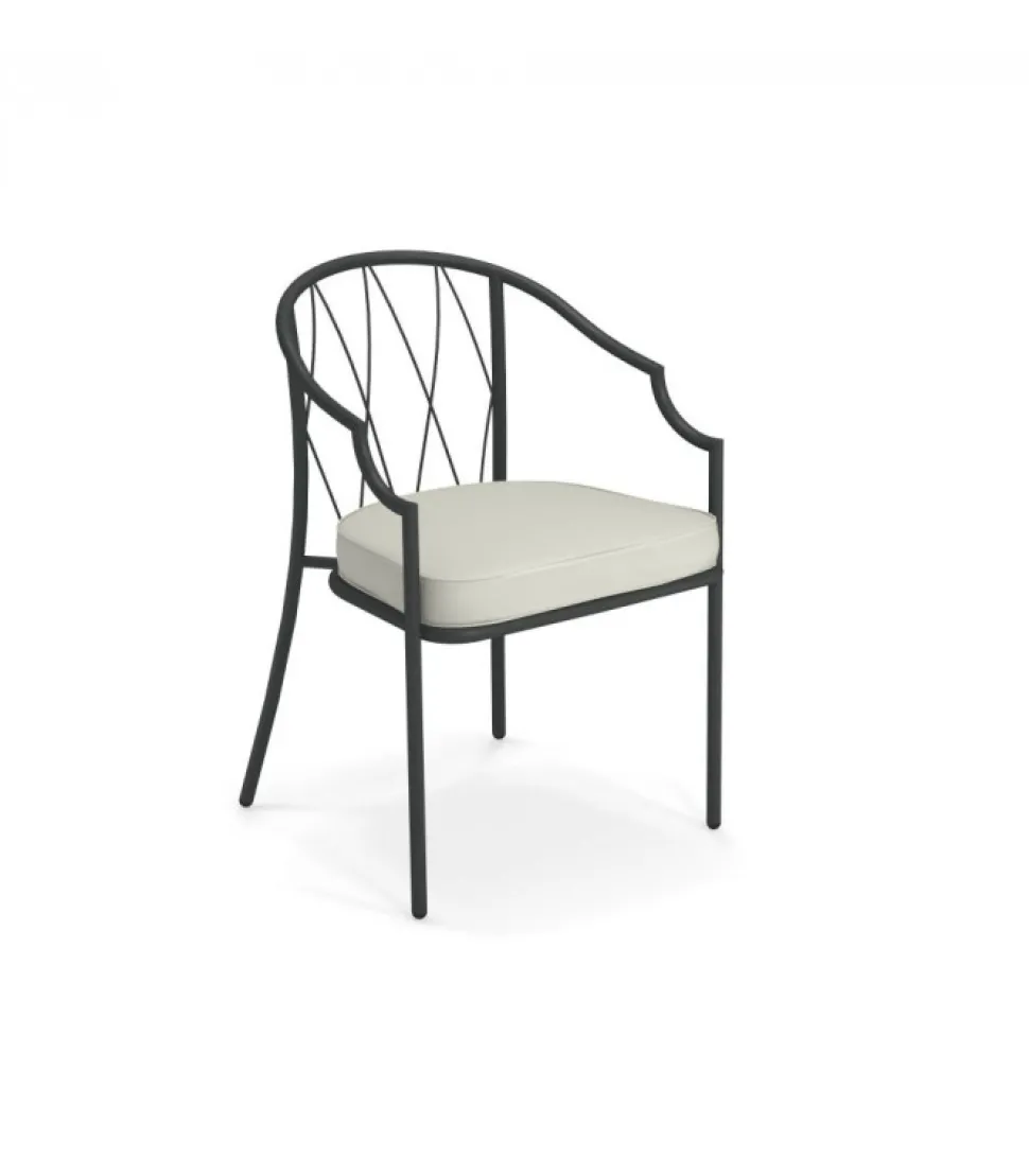 Poltroncina Con Struttura In Acciaio Verniciato, La Seduta E In Lamiera Stirata Pre Zincata A Caldo E Verniciata, Lo Schienale E In Acciaio A Tondini Pre Zincato A Caldo. E Accessoriabile Di Cuscino Per La Seduta, Disponibile In Molti Tessuti E Molti Colori.