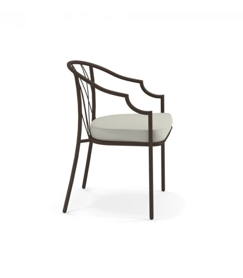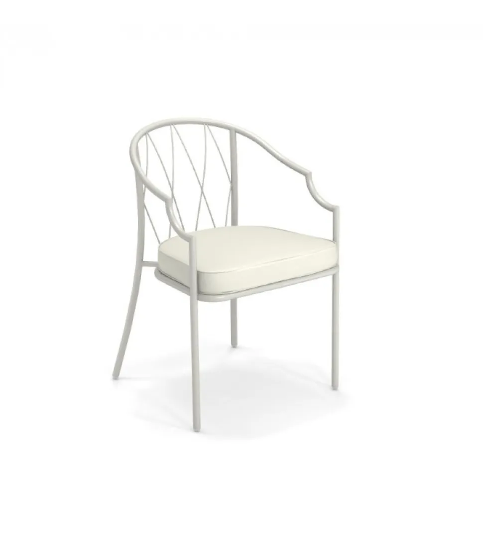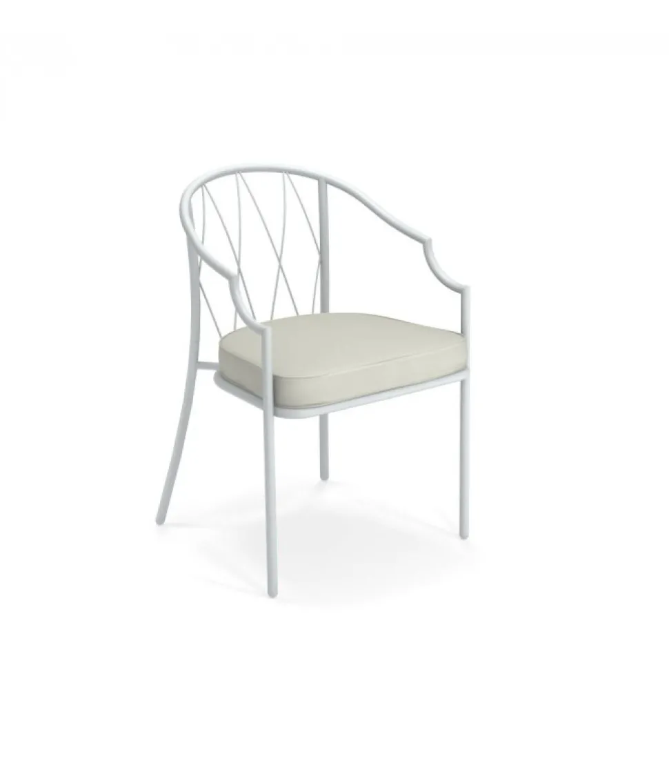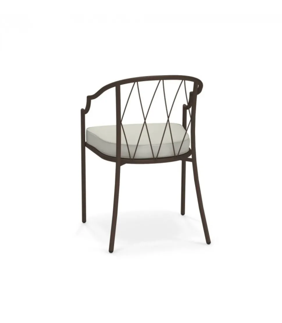 Poltroncina Con Struttura In Acciaio Verniciato, La Seduta E In Lamiera Stirata Pre Zincata A Caldo E Verniciata, Lo Schienale E In Acciaio A Tondini Pre Zincato A Caldo. E Accessoriabile Di Cuscino Per La Seduta, Disponibile In Molti Tessuti E Molti Colori.