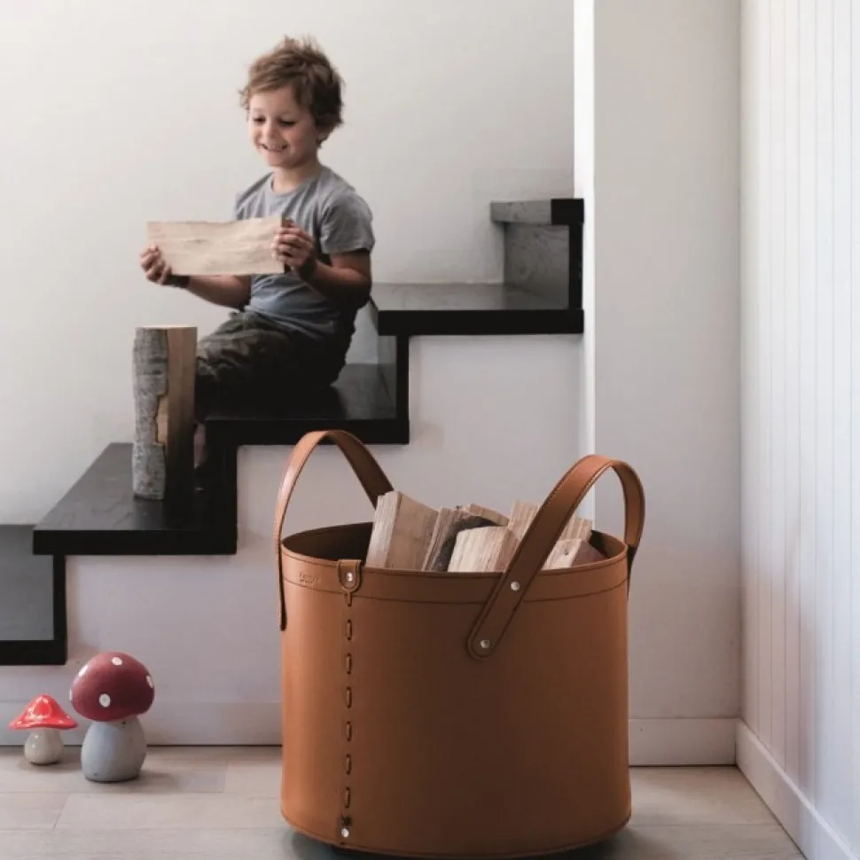 Portaoggetti Tonda In Cuoio Cucito A Mano