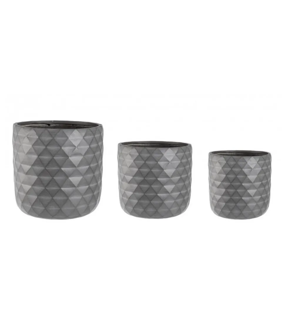 Set3 Vaso Pyramid To Antracite Fibra Di Vetro, Foro E Tappo Sul Fondo. Da Esterno. – Dimensioni In Cm. O30 (L.) O30 H/O37 (L.) 37 H/ O44 (L.) O44 H