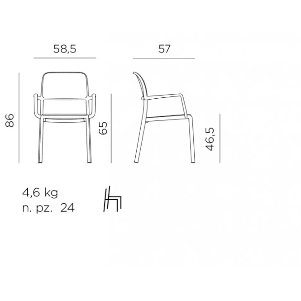 Riva, Sedia Impilabile Con Braccioli In Polipropilene Per Indoor Ed Outdoor, Con Piedini Antiscivolo.