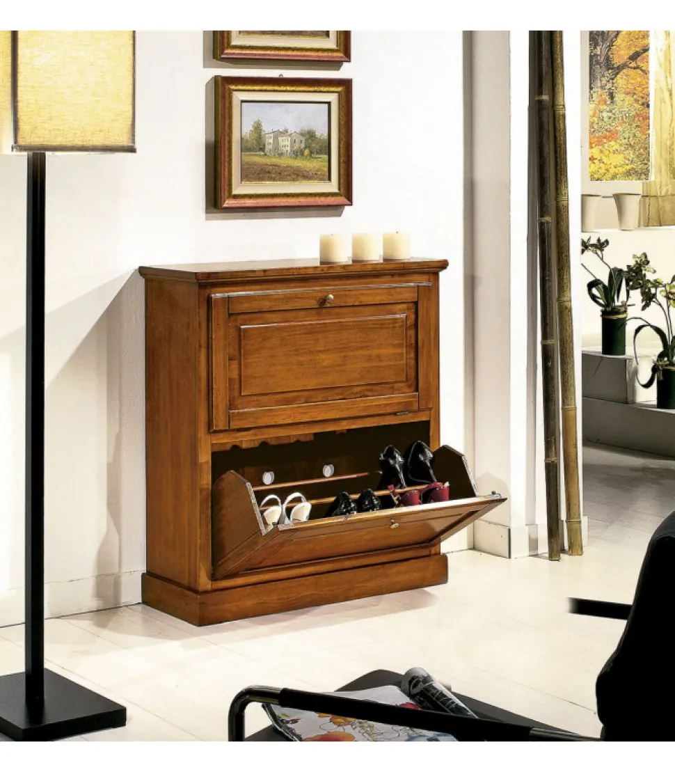 Mobiletto Scarpiera In Legno Massello Tinto Noce Con 2 Ribalte 12 Paia Di Scarpe