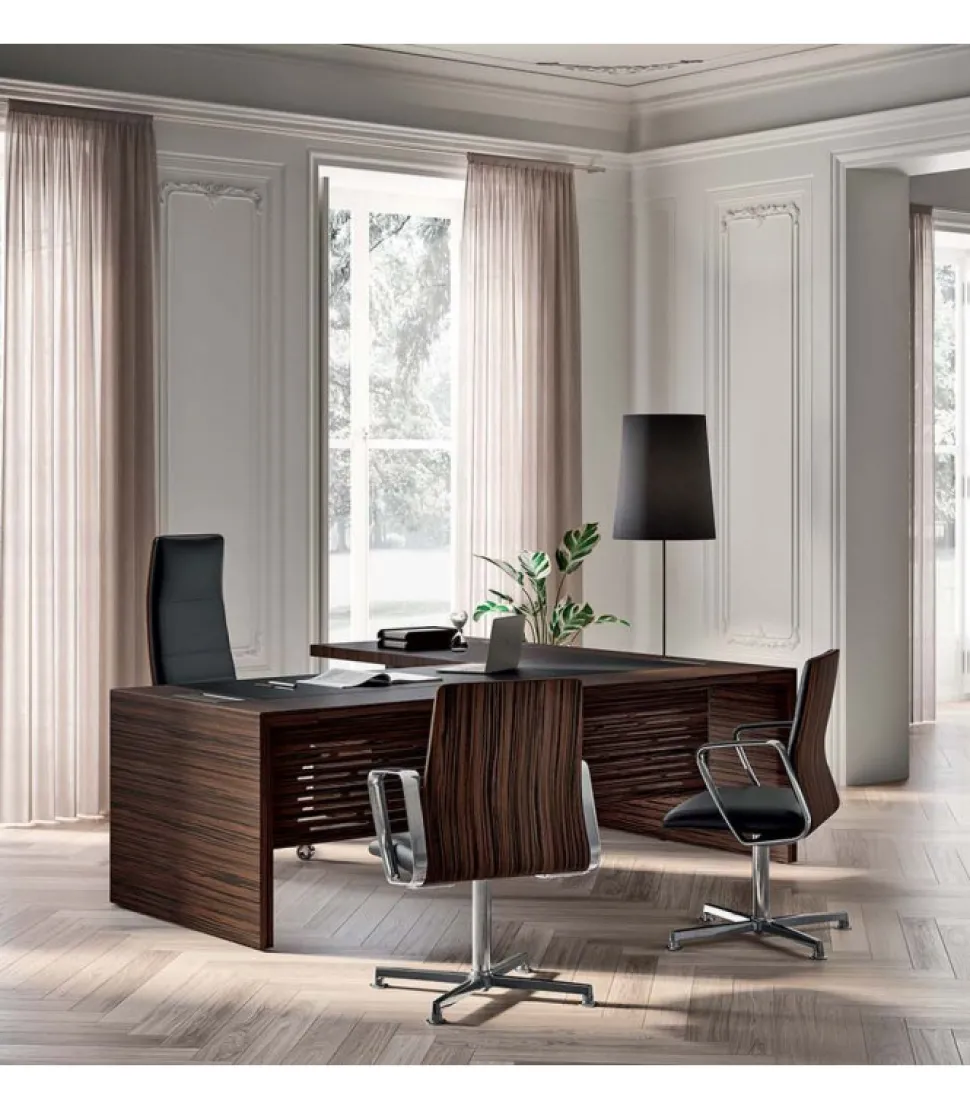Si Tratta Dell’Evoluzione Della Linea X10, Con Alcune Varianti Di Forme E Di Finiture. E-10 Mette In Dialogo In Modo Inedito Gambe E Piano Senza Soluzione Di Continuita, In Un’Alleanza Armonica E In Un Gioco Di Vuoti E Pieni. La Struttura In Legno Impiallacciato, Le Gambe Pannellate Laccate O In Legno E Il Piano Con Inserti In Cuoietto Impreziosiscono Il Modello Direzionale, Mentre Gli Accessori Funzionali, Come Lo Sportello Passacavi, Rendono La Scrivania Pratica Da Utilizzare, Mantenendo Un’Estetica Formale. Disponibile Anche Nella Versione Tavolo Riunioni Con La Possibilita Di Scegliere Tra Diverse Misure E Composizioni.