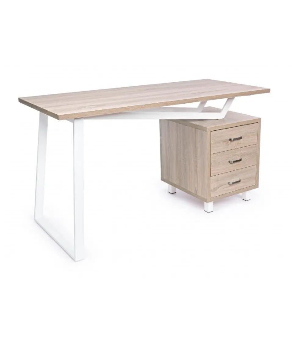 Scrivania Armande Bianca C-Cassettierastruttura In Acciaio Vernicato A Polvere- Piano E Cassettiera In Mdf Rivestito Con Carta Melaminica Effetto Legno- Maniglie In Lega Di Alluminio- Da Assemblaredimensioni:140(L) – 60(P) – 76(H)