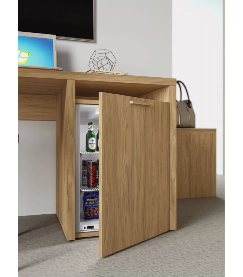 La Scrivania E Dotata Di Vano Posteriore Arieggiato Per Agevolare Il Corretto Funzionamento Del Frigo.