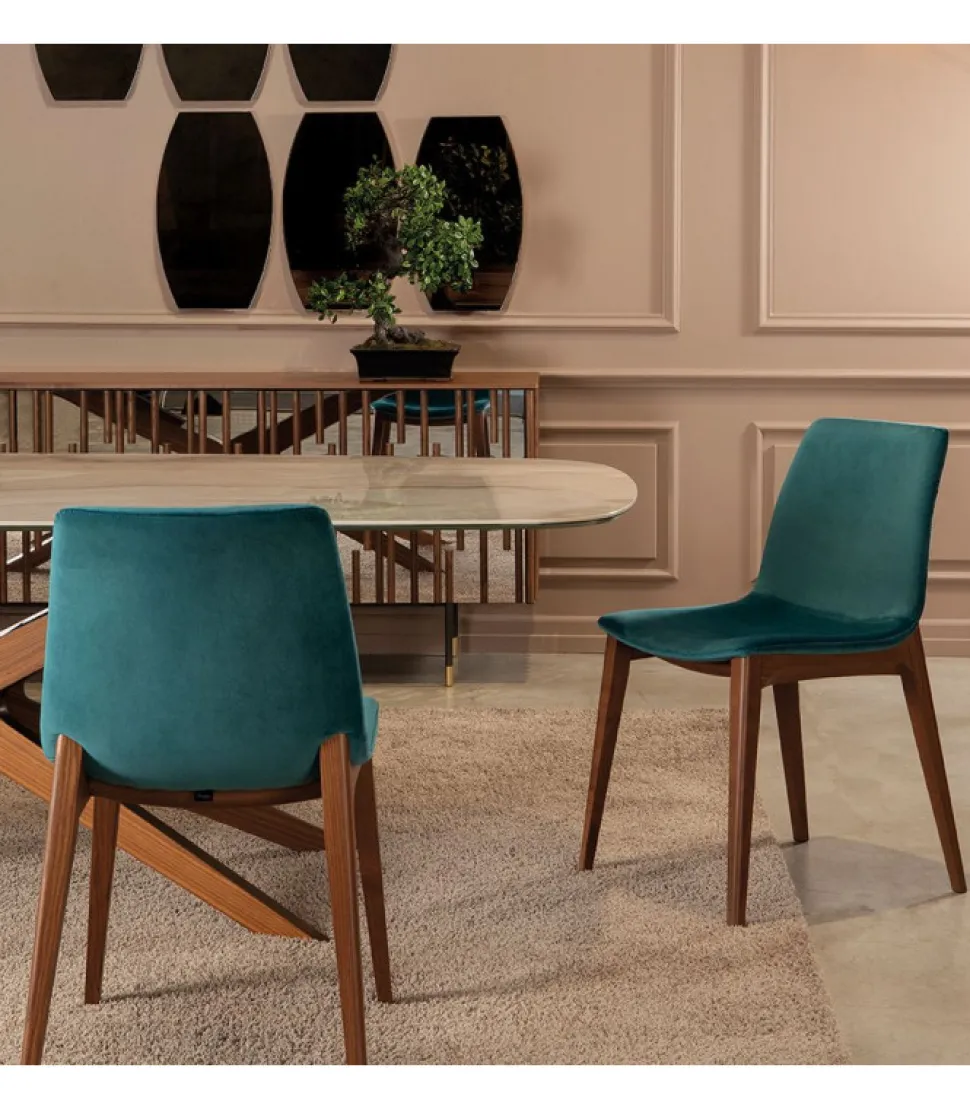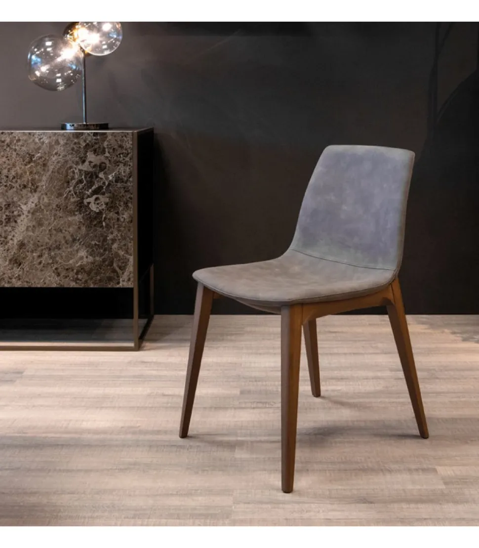Sedia Rivestita In Pelle, Eco-Pelle O Tessuto, Disponibile In Moltissimi Colori Diversi. La Struttura A 4 Gambe E In Legno. Non E Sfoderabile Ed E Venduta In Stock Da 2 Pezzi.