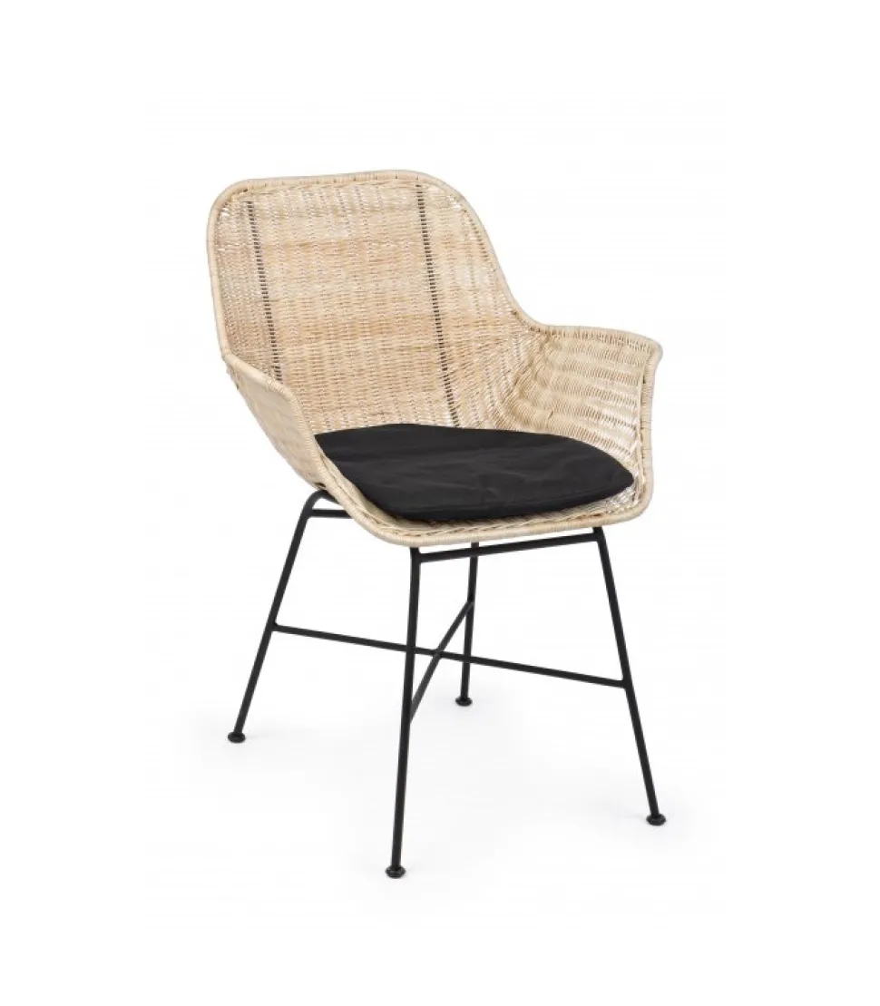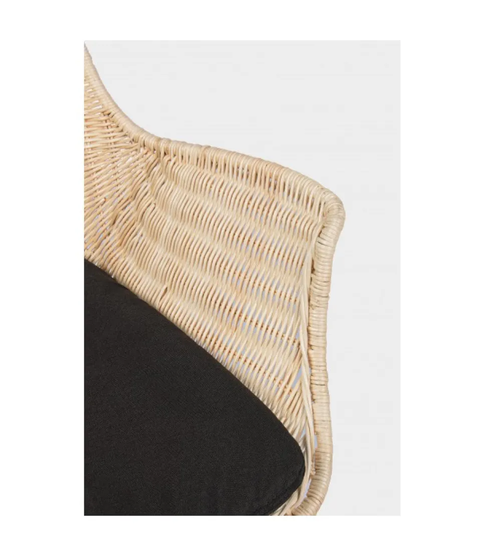 Sedia C-Br C-C Atica Nerostruttura In Acciaio Verniciato A Polvere Epossidica, Colore Nero Opaco- Intreccio In Midollino- Finitura A Base Di Nitrocellulosa- Cuscino Sfoderabile Con Tessuto Olefin (100% Polipropilene)- Si Raccomanda Di Non Esporre L’Articolo Alla Luce Diretta Del Sole Ed Alle Intemperie- Gambe Da Assemblare.Dimensioni:62(L) – 59(P) – 81(H) – 48(H. Seduta) – 63(H. Braccioli)