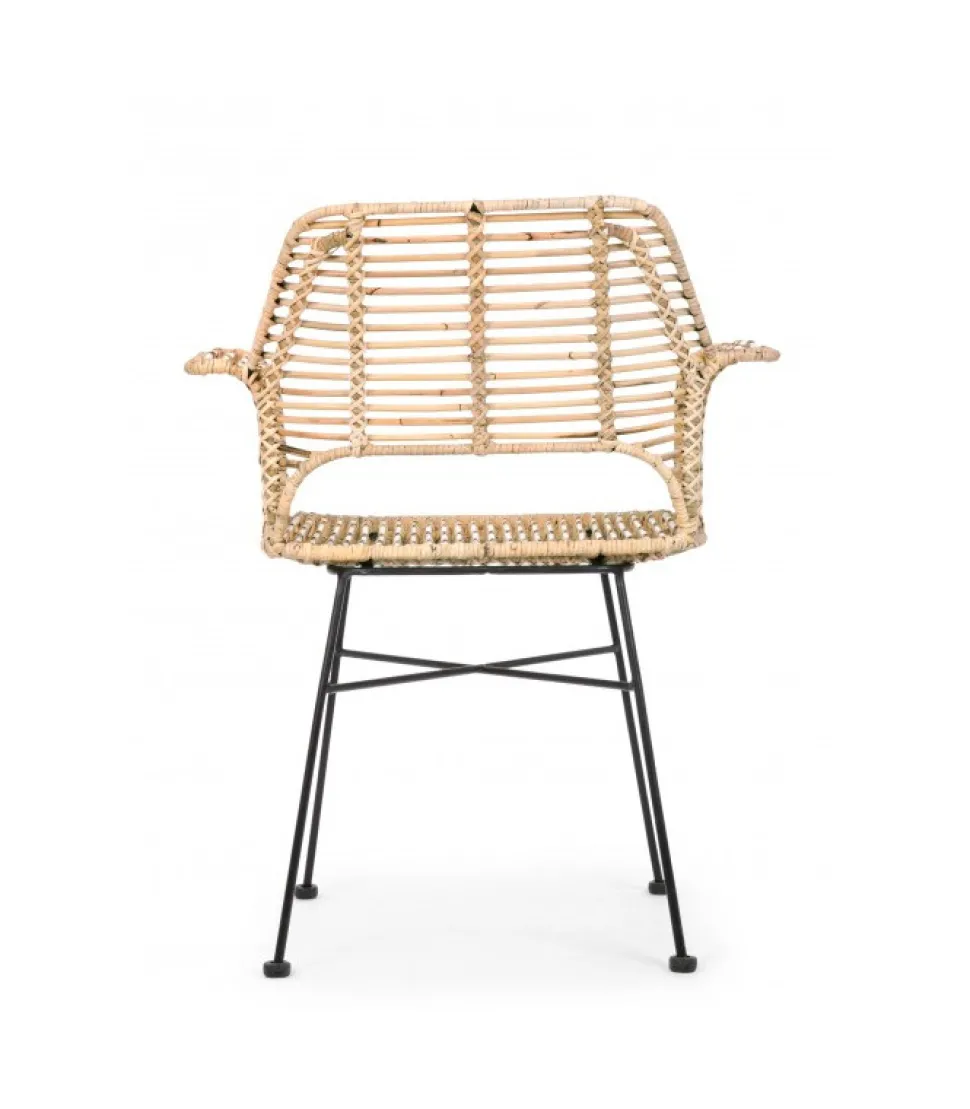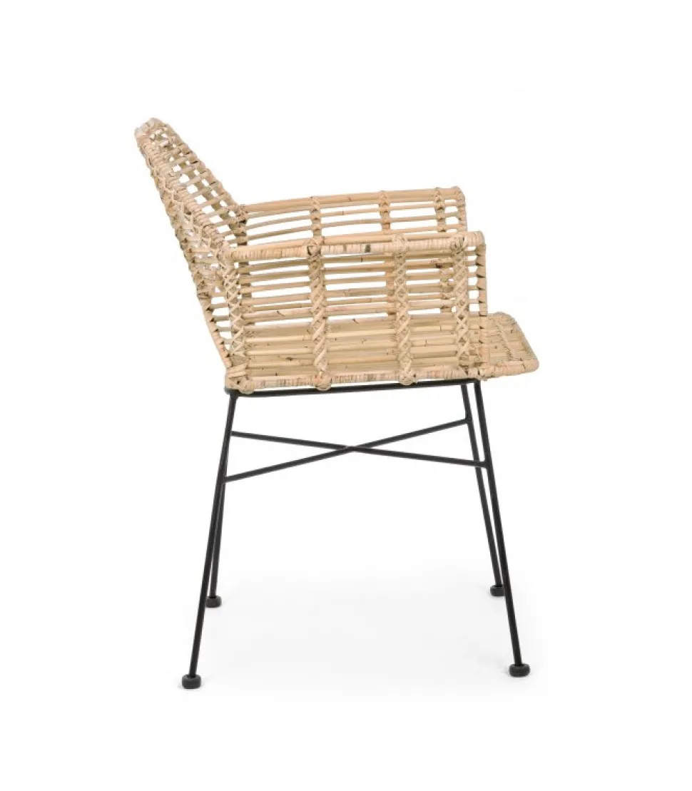 Sedia C-Br Tunas Naturalestruttura In Acciaio Verniciato A Polvere Epossidica, Intreccio In Kubu, Rifinitura Naturale Con Vernice Melaminica- Si Raccomanda Di Non Esporre Alla Luce Diretta Del Sole Ed Alle Intemperie- Gambe Da Assemblare.Dimensioni:66(L) – 58.5(P) – 83(H) – 46.5(H. Seduta) – 66.5(H. Braccioli)