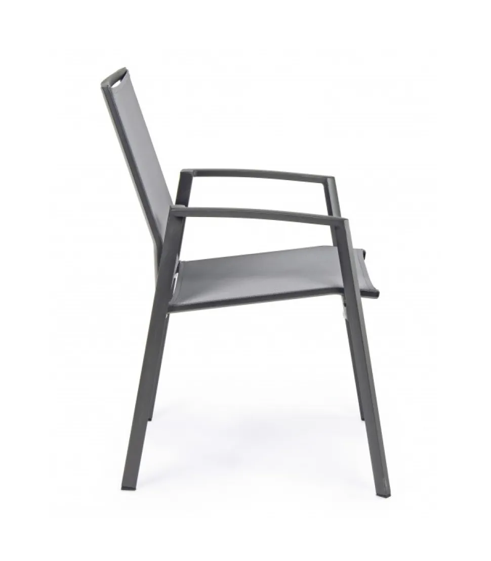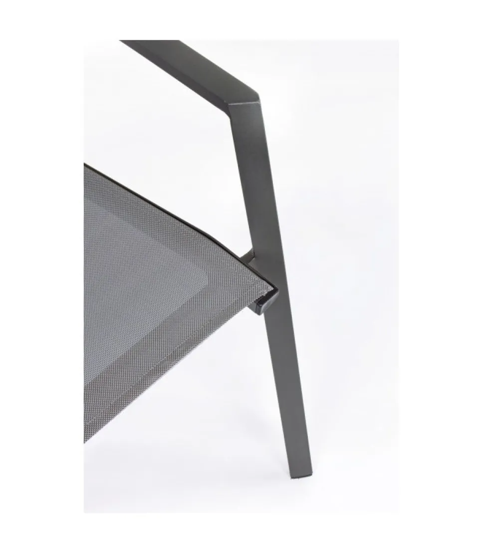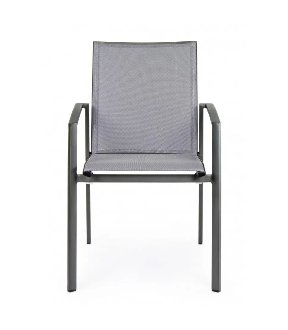 Struttura In Alluminio, Verniciato A Polvere (Poliestere). Seduta E Schienale Rivestiti In Textilene Phifer 1X1. Impilabile.