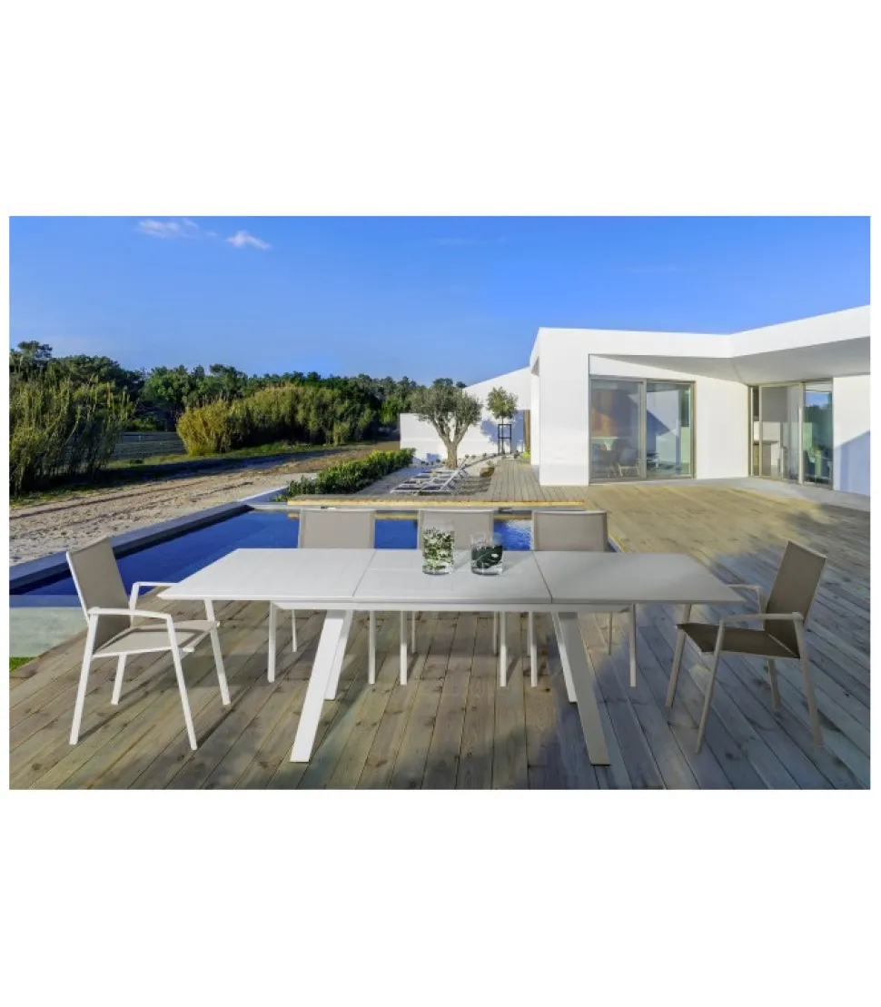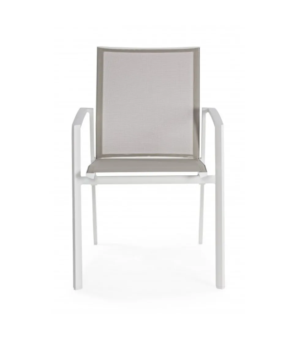 Struttura In Alluminio, Verniciato A Polvere (Poliestere). Seduta E Schienale Rivestiti In Textilene Phifer 1X1. Impilabile.