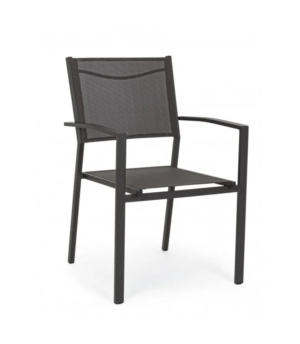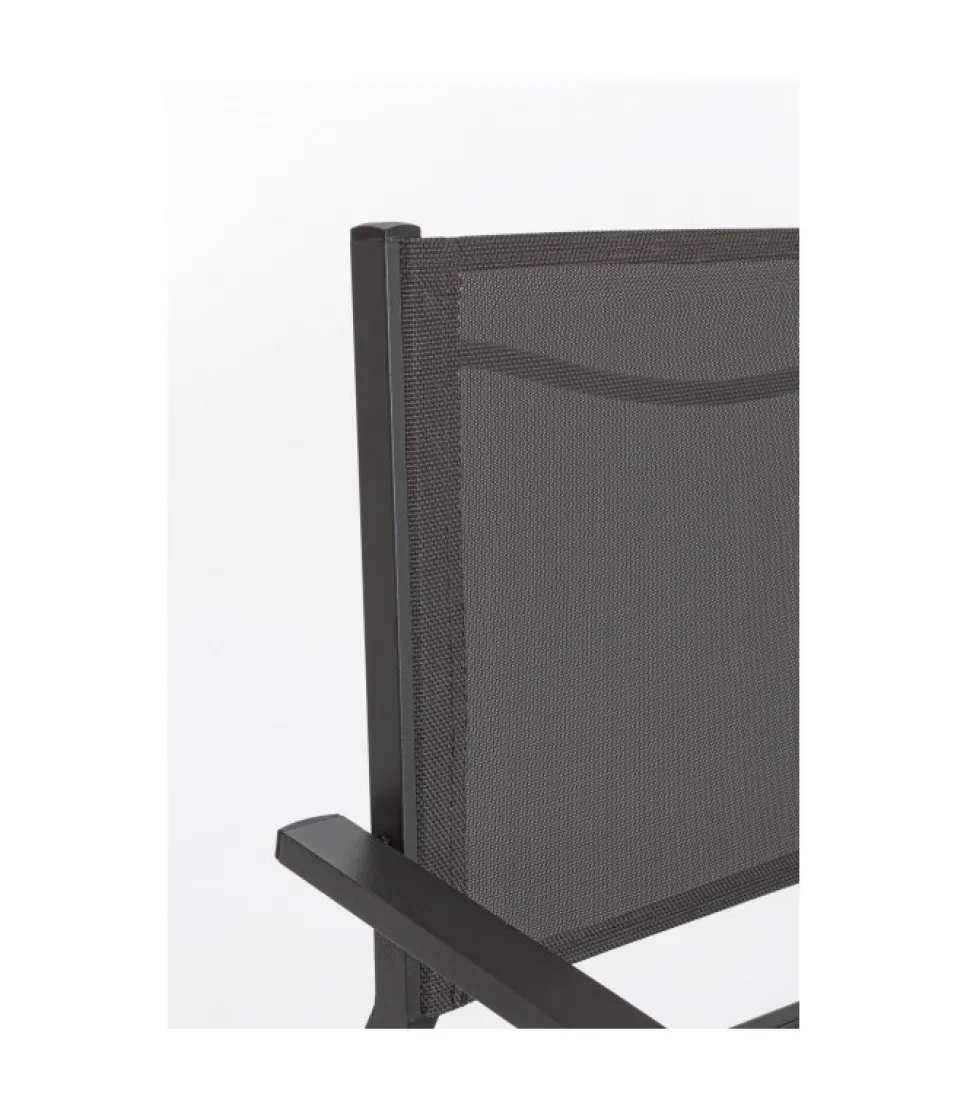 Struttura In Alluminio, Verniciato A Polvere (Poliestere). Barra Supporto Schienale In Acciaio. Seduta E Schienale In Textilene 2X1. Viteria In Acciaio Galvanizzato. Impilabile.