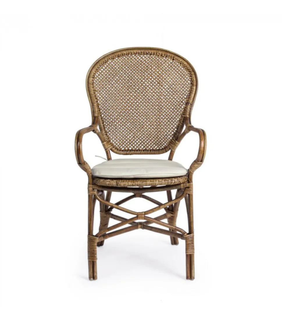 Sedia C-Br C-C Edelina Mielerattan, Colorato Ed Anticato- Rifinitura Con Vernice Melaminica- Cuscino Con Tessuto In Cotone- Si Raccomanda Di Non Esporre Il Mobile Alla Luce Diretta Del Sole Ed Alle Intemperie- Imballo Senza Cartone.Dimensioni:55(L) – 62(P) – 96(H) – 47(H. Seduta) – 65(H. Braccioli)