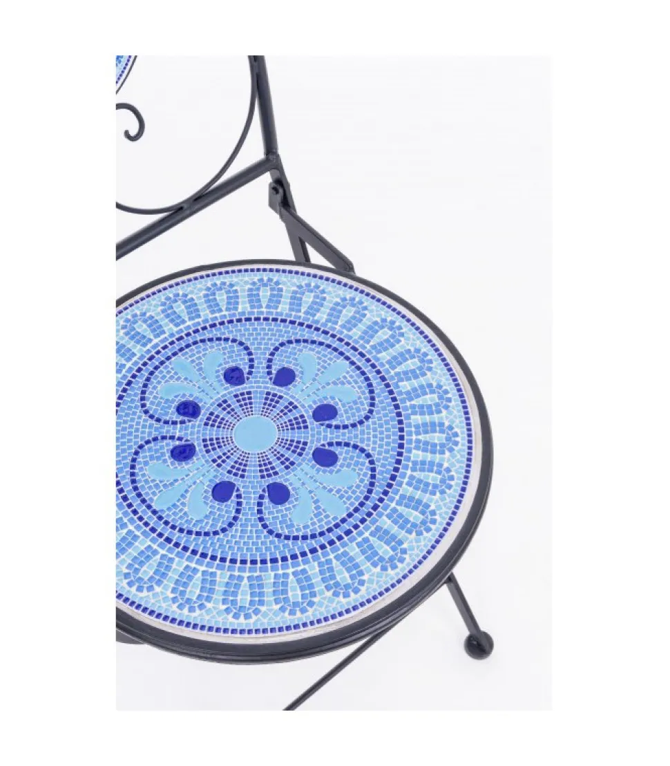 Struttura In Acciaio Trattato Per L’Esterno (E-Coating) E Verniciato A Polvere Epossidica. Seduta E Schienale Con Decoro In Ceramica. Pieghevole.