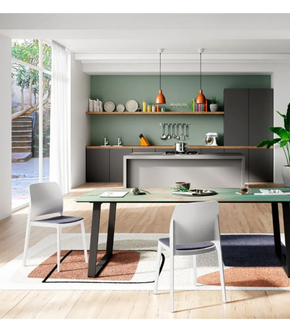 Sedia In Polipropilene, Disponibile In Molti Colori Differenti, Con O Senza Braccioli. In Caso Di Scelta Della Sedia Con Imbottitura E Possibile Scegliere Tra Il Tessuto Trick (Non Sfoderabile), Il Tessuto M.A.M. (Sfoderabile) E Il Tessuto Flash Nativa (Sfoderabile).