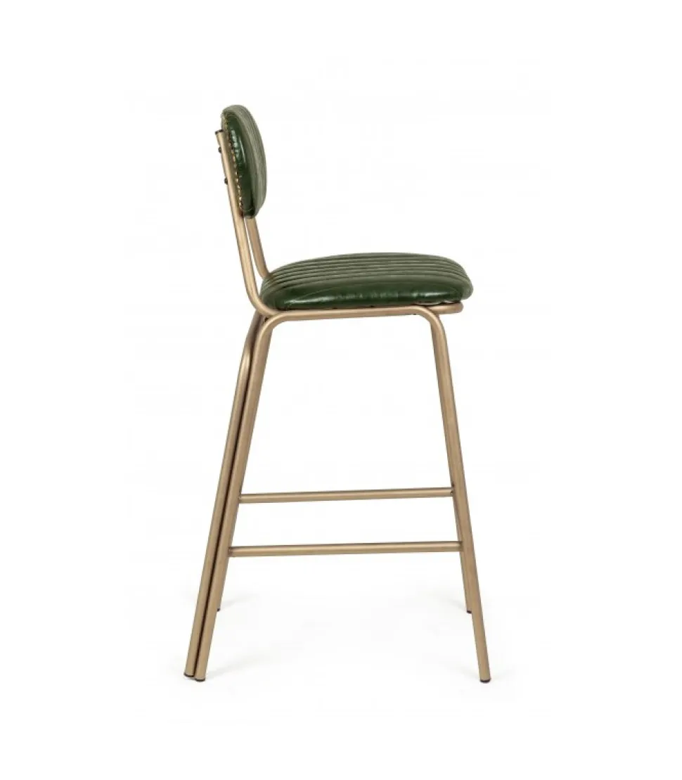 Sgabello Bar Addy Verde Scurostruttura In Acciaio Verniciato A Polvere Epossidica, Rivestimento In Similpelle- Schienale Con Applicazione Di Borchie In Metallo- Densita’ Imbottitura In Schiuma Poliuretanica Seduta E Schienale 21Kg/M3.Dimensioni:41(L) – 51(P) – 100(H) – 73(H. Seduta)