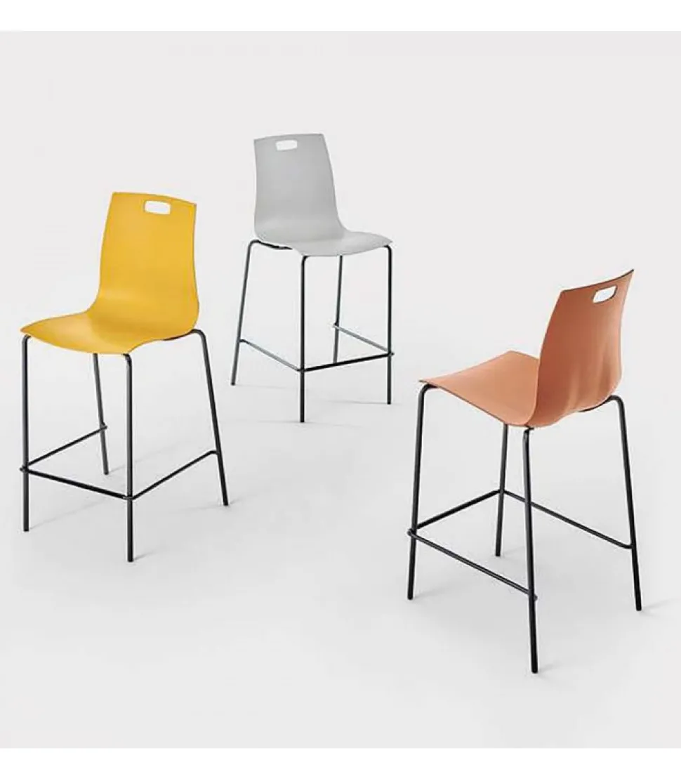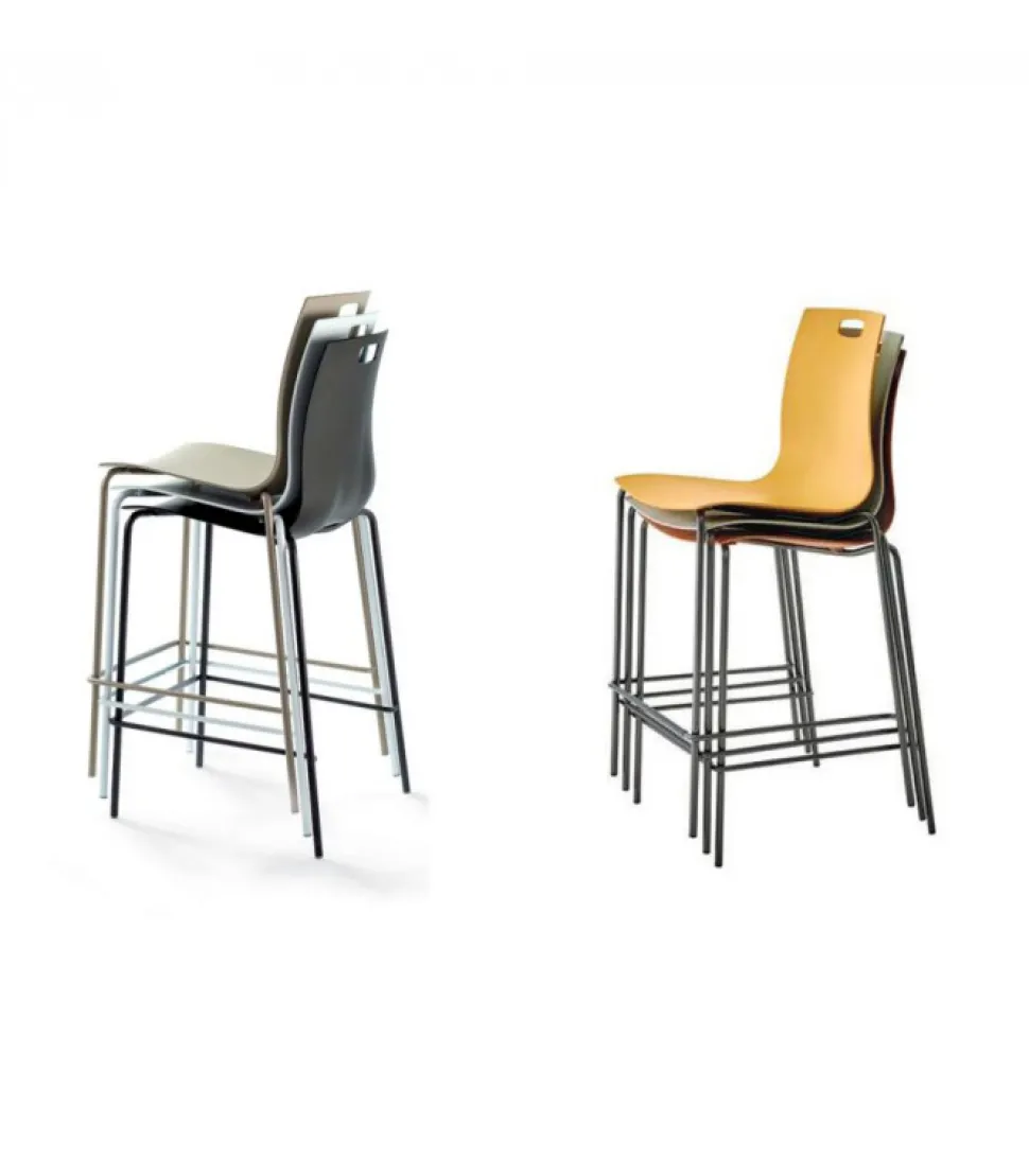 Sgabello Olly Impilabile Con Struttura In Metallo Verniciato In Diversi Colori E Seduta In Polipropilene Colorato. Disponibili Della Stessa Collezione Anche Le Sedie Nelle Stesse Versioni Di Colore. A Richiesta Disponibile Con Trattamento Per Esterni (Richiedi Il Preventivo)