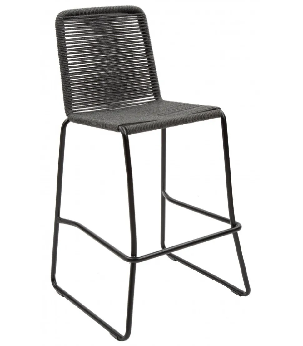 Dean, Sgabello Per Esterni In Ferro Con Seduta In Corda, Disponibile Nei Colori Bianco E Antracite.