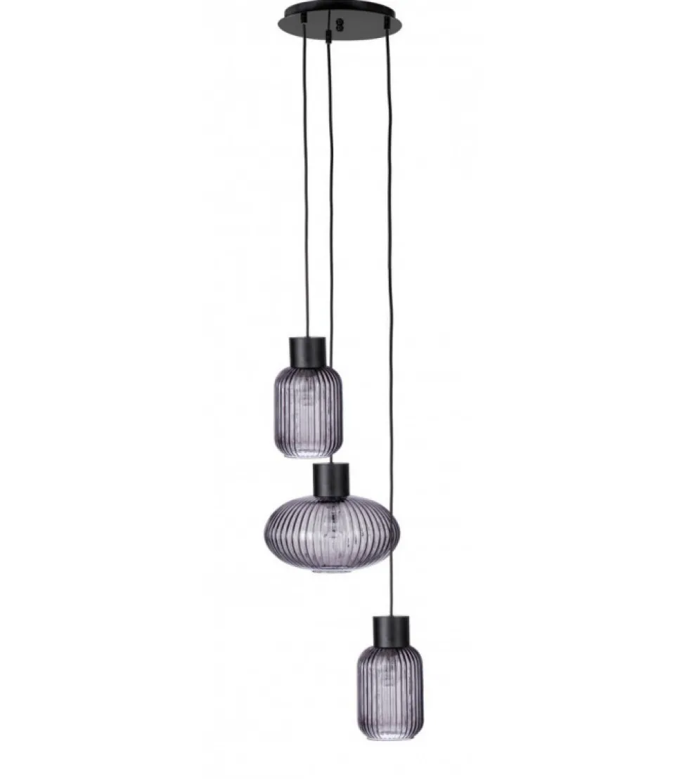 Lampadario 3Luci Showy To Fume-Nero Acciaio Finitura Color Nero. Paralume In Vetro. Lamp. (3X) E27 Max 60W, E27 11W Comp. Fluor Integr. Risp. En. , E27 42W Alog. Risp. En. Lampadina/E Non Inclusa/E. Lunghezza Cavo: 1.5 Mt. Da Assemblare – Dimensioni In Cm. O40X150 H