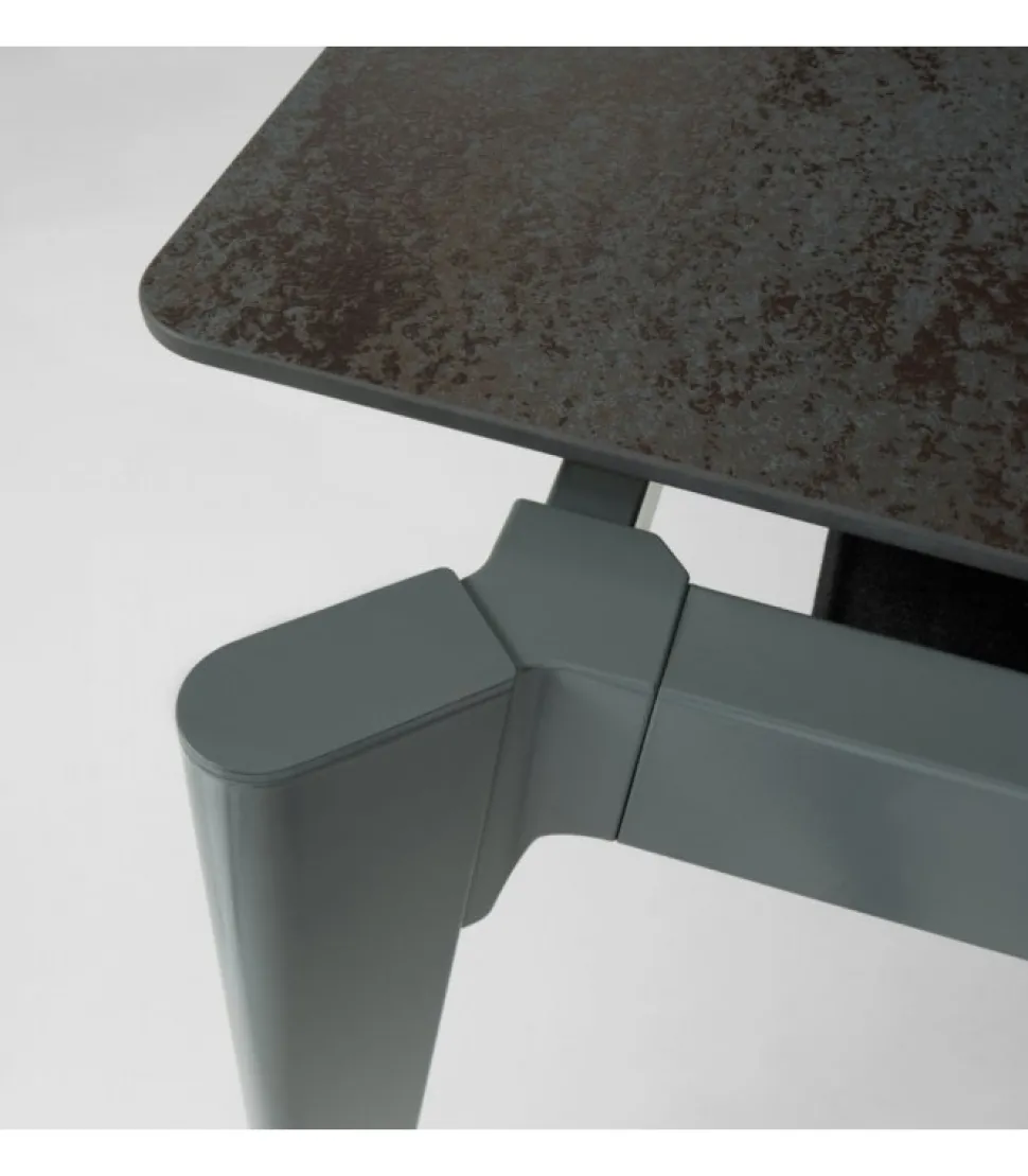 Struttura Composta Da Profili In Acciaio Tagliati A Laser, Verniciata A Polveri Epossidiche. Giunto Angolare D’Unione Stampato In Lega Di Alluminio, In Finitura Spazzolata Lucida O Verniciata. Gambe In Acciaio Verniciato Dotate Di Un Dispositivo Brevettato Di Ruote A Scomparsa “Click Clack”, Che Agevola L’Apertura Del Tavolo. Il Piano E L’Allunga Sono Impiallacciati Sp.18 Mm Con Bisellatura E Angoli Raggiati Oppure Con Sistema “Glue Point”, Che Consiste Nell’Incollaggio Di Un Piano Di 6 Mm — Vetro Temperato, Ceramica Oppure Un Pannello Cleaf O Fenix Con Angoli Raggiati — Su Un Sottopannello Da 12 Mm.