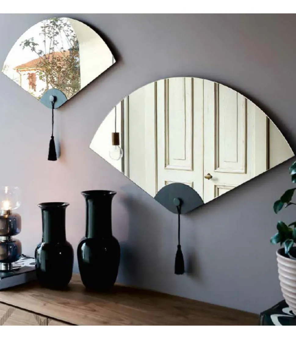 Una Linea Orientale, Un Ventaglio Di Luce E Colori; Una Lavorazione Unica Che Contrappone Uno Specchio Argentato O Effetto Bronzo, Ad Un Dolce Tassello In Legno, Disponibile In Amaranto Opaco, Nero Opaco, Noce Canaletto O Rovere Scuro Termotrattato. Il Tutto Reso Ancor Piu Elegante Da Una Raffinata Nappa Nera.