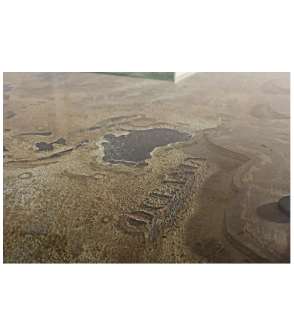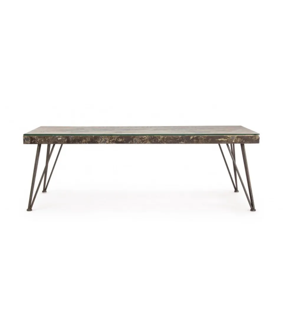 Tavolino Atlantide 140X75Struttura In Acciaio Anticato, Piano In Vetro E Mdf Con Decorazione In Cemento- Gambe Da Assemblare.Dimensioni:140(L) – 75(P) – 47(H)