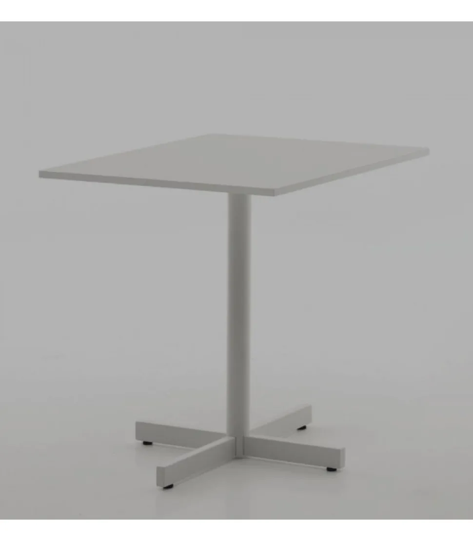 Tavolino Bristot, Con Base A 4 Razze In Tubolare Metallico E Colonna In Tubo, Verniciati Epossidico, Il Piano E Disponibile In Cleaf, In Moltissimi Colori. I Piedini Sono Regolabili, L’Altezza Del Tavolo E 75 Centimetri. Il Piano Ha Uno Spessore Di 18 Millimetri.