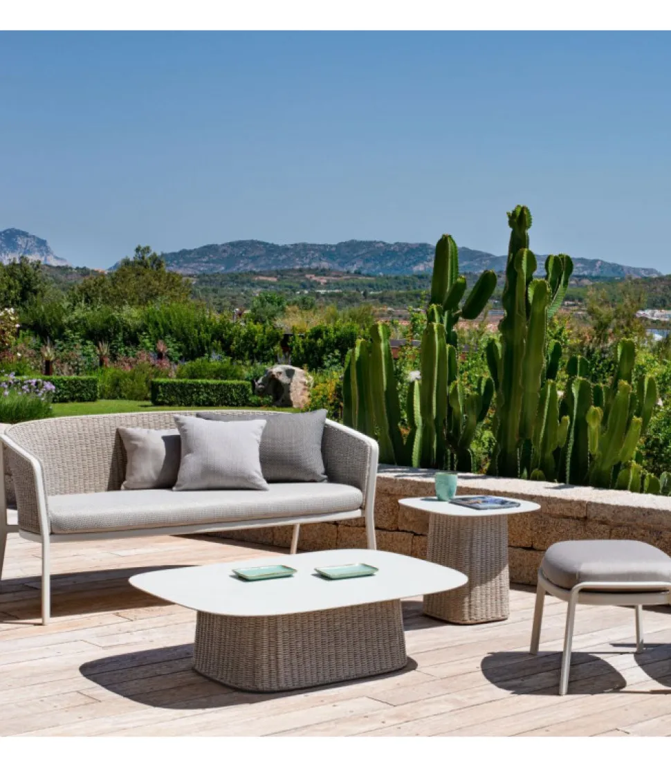 La Collezione Carousel Si Compone Di Quattro Versioni Di Poltroncina Dining, Tre Versioni Di Poltrona Lounge, Divano, Pouf, Coffee Table Quadrato E Rettangolare. Nelle Sedute, La Struttura A Cavalletto E In Tubolare Di Alluminio. Il Sedile, Costituito Da Una Lamiera In Lega Di Alluminio Che Viene Imbutita Per Conferire Una Forma Pulita, E Successivamente Fissato Alla Struttura Di Alluminio Attraverso Una Saldatura Di Tipo Strutturale, Eseguita Con Tecnologia Tig Che Conferisce Particolare Resistenza Oltre Che Un Miglior Standard A Livello Estetico. La Struttura Dello Schienale E In Acciaio Ed E Il Supporto Su Cui Sono Realizzati Gli Intrecci Decorativi Nei Vari Materiali Proposti. Tutti I Materiali Selezionati Garantiscono Una Resistenza E Una Stabilita Del Colore. Per La Poltroncina Dining E Prevista Una Versione In Tessuto Tecnico Quale Propilene In Fibra Fiber Fill, Con Cui Viene Realizzato Un Cuscino Sedile E Uno Schienale Autoportante. Questi Materiali Garantiscono Idrorepellenza, Per Questo Il Prodotto E Particolarmente Idoneo In Tutti Gli Usi Di Ambienti Marini E In Condizioni Climatiche Estreme. I Pouf Hanno Una Struttura In Tubolare Ovale Di Alluminio Mentre I Tavoli Hanno Una Struttura In Tondino Di Acciaio Con Piano In Lega Di Alluminio E Sottopiedi Regolabili In Nylon E Vite Inox. Tutti Decorati Con Intreccio Di Corda.