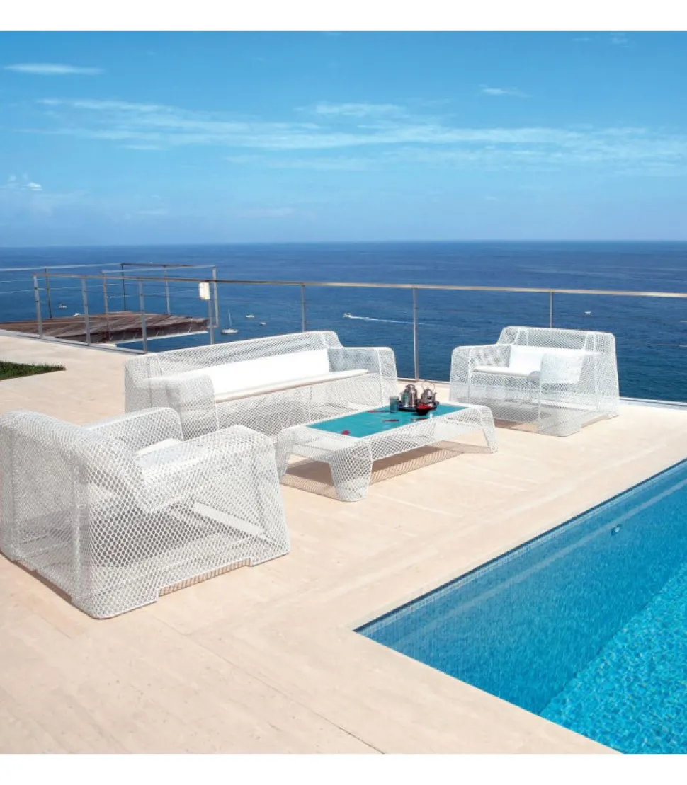 Interprete Di Un Concetto Nuovo Per L’Outdoor Living – Quello Di Salotto In Acciaio Dallo Stile Industriale – Ivy E Una Famiglia Di Arredi-Scultura Dal Design Lineare E Rigoroso, Con Sedute Sinuose E Morbide In Abbinamento A Tavoli Di Grandi Dimensioni. Tratto Caratteristico Della Collezione E La Maglia Metallica In Lamiera D’Acciaio, Che Crea Particolari Giochi Di Vuoti E Pieni, Raggiungendo Un Effetto Di Leggerezza. L’Imponenza Delle Grandi Forme Vuote Che Inglobano La Natura Si Sposa All’Armonia Dei Motivi Intrecciati, In Un Equilibrio Unico.Tavolino Da Giardino Ivy Ta.