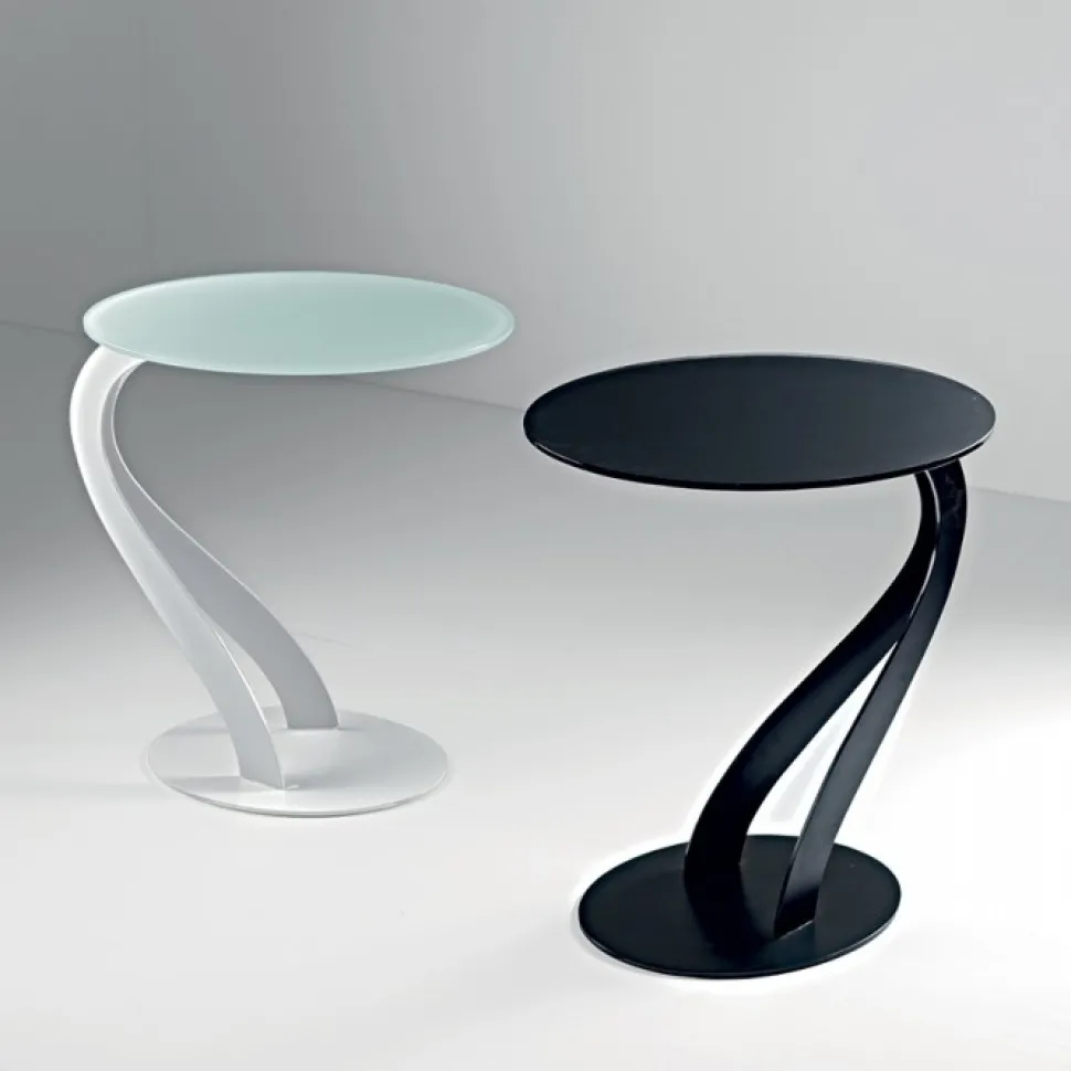 Tavolino Ovale, Top In Vetro Temperato Acidato Da 8 Mm Retro-Verniciato, Struttura In Acciaio Verniciato Con Finitura Sable