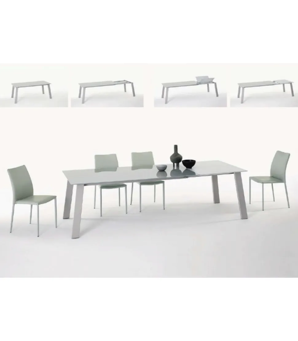 Il Sistema Di Allunga Telescopica Mantiene Sempre Le Gambe In Posizione Perimatrale Anche In Configurazione Aperta, Garantendo La Massima Fruibilita Ed Il Massimo Comfort Di Utilizzo, Senza Gambe Centrali Che Interferiscono Con Le Seduta.